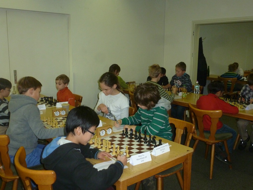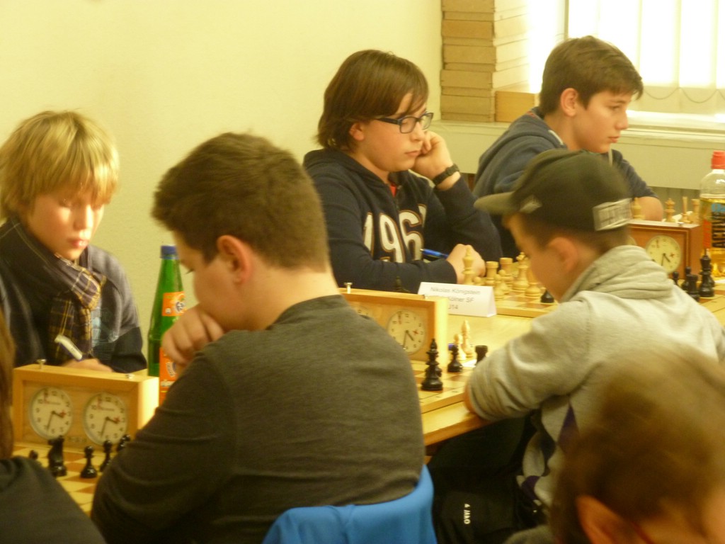 Am vergangenen Samstag fand in unseren Vereinsräumen der erste Spieltag der diesjährigen Kölner Jugend-Einzelmeisterschaften statt. Um 11 Uhr starteten alle Altersklassen in ihre erste Runde und um 13 Uhr (U8 und U10) bzw. 15 Uhr (alle anderen Altersklassen) begann dann die zweite Runde. In diesem Jahr treten knapp 100 Spieler in den sieben Altersklassen (U8 bis U20) an. Bis auf die U18 und die U20, die ein gemeinsames Turnier spielen, können alle anderen Altersklassen ihren Meister und die Qualifikanten für die entsprechenden Mittelrhein-Meisterschaften in eigenen Turnieren ausspielen.