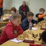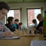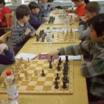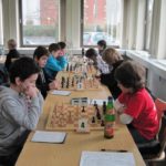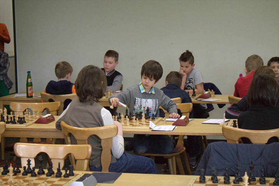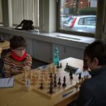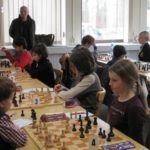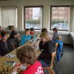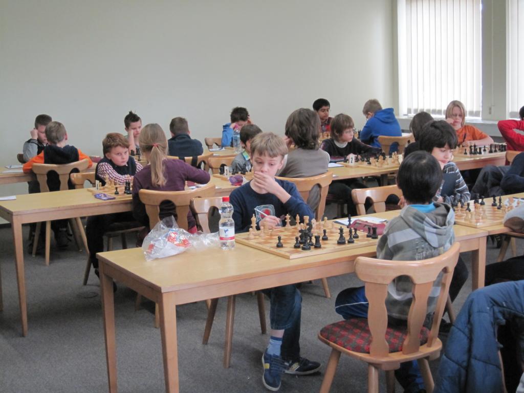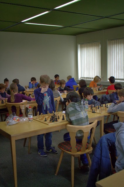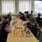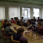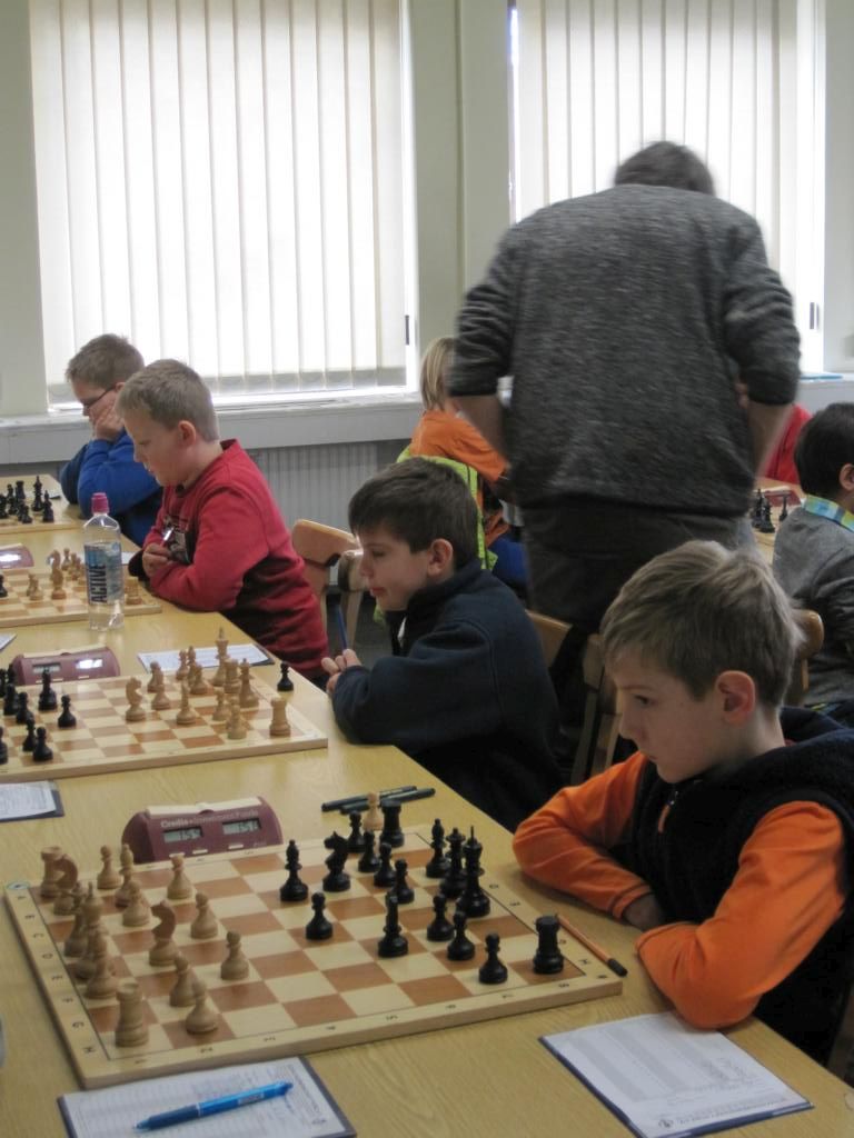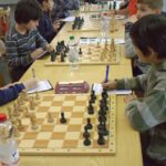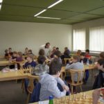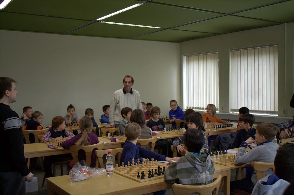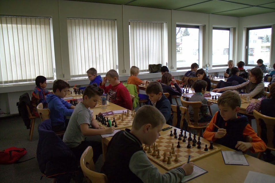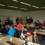 Nur einen Tag nach der letzten Runde der Kölner Jugend-Einzelmeisterschaft (also am 16.02.) war unser Spiellokal erneut fast bis auf den letzten Sitzplatz besetzt. Insgesamt nicht weniger als zehn(!) Mannschaften kämpften um Brett- und Mannschaftspunkte. Zum Glück waren nur zwei davon 8er-Mannschaften. Der Rest waren unsere vier U12-Mannschaften und ihre jeweiligen Gegner. Da diese sich ja an jeweils ’nur‘ vier Brettern gegenüber saßen, konnten wir diese vier Mannschaftskämpfe gut in unserem größten Raum unterbringen. Damit spielte in diesem Raum mehr als die Hälfte der gesamten U12-Mannschaftsmeisterschaft der Kölner Schachjugend!
