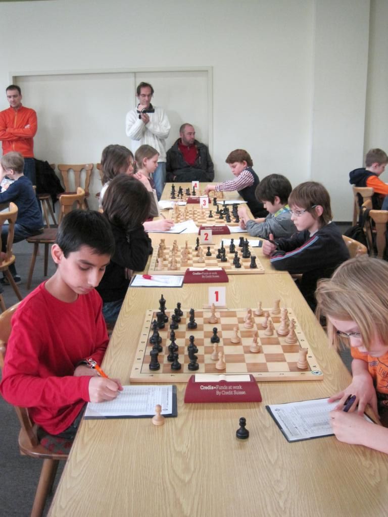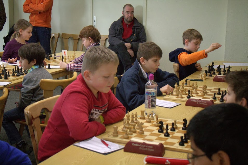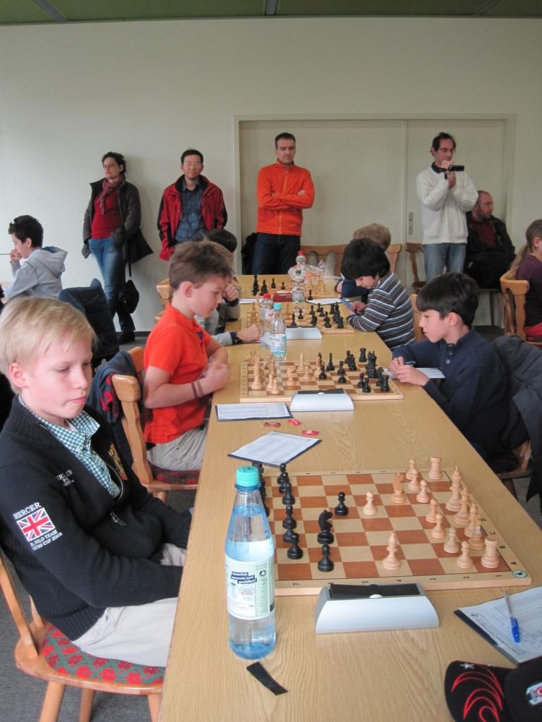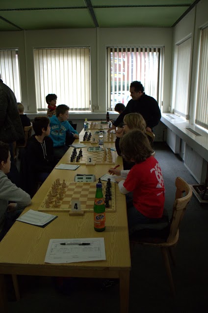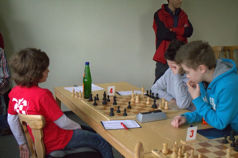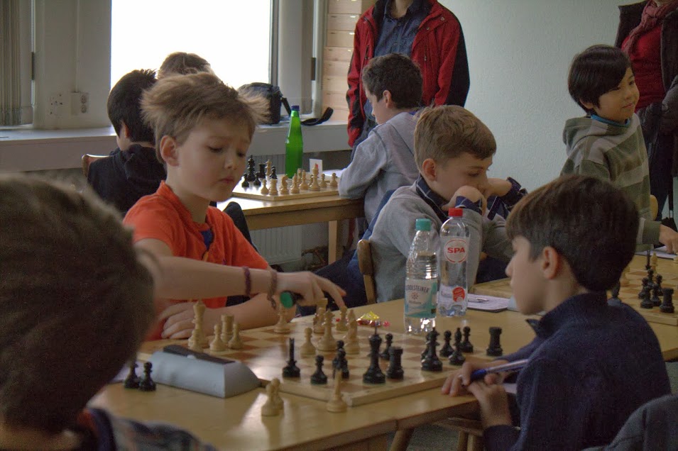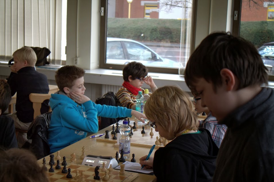 Zur vierten Runde in der Gruppe Ost empfing unsere erste Mannschaft einen ihrer beiden größten Konkurrenten um den Einzug ins Finale der beiden Gruppensieger. Durch eine konzentrierte Leistung konnte man am Ende aber einen relativ ungefährdeten 4:0-Erfolg gegen die Mannschaft aus Köln-Mülheim erzielen. Dadurch ist nun die U12 des Klubs Kölner Schachfreunde (KKS) der schärfste Konkurrent. Gegen ebendiese Mannschaft spielte sozusagen ’nebenan‘ unsere dritte Mannschaft. Gegen die favorisierten KKSler gab es zwar eine Menge Gegenwehr, doch am Ende blieb leider nichts Zählbares für unsere Mannschaft übrig. Ein Trost für unsere dritte ist, dass sie nun die stärksten Gegner hinter sich hat, so dass in den nächsten Runden der eine oder andere Mannschaftspunkt noch möglich sein sollte.