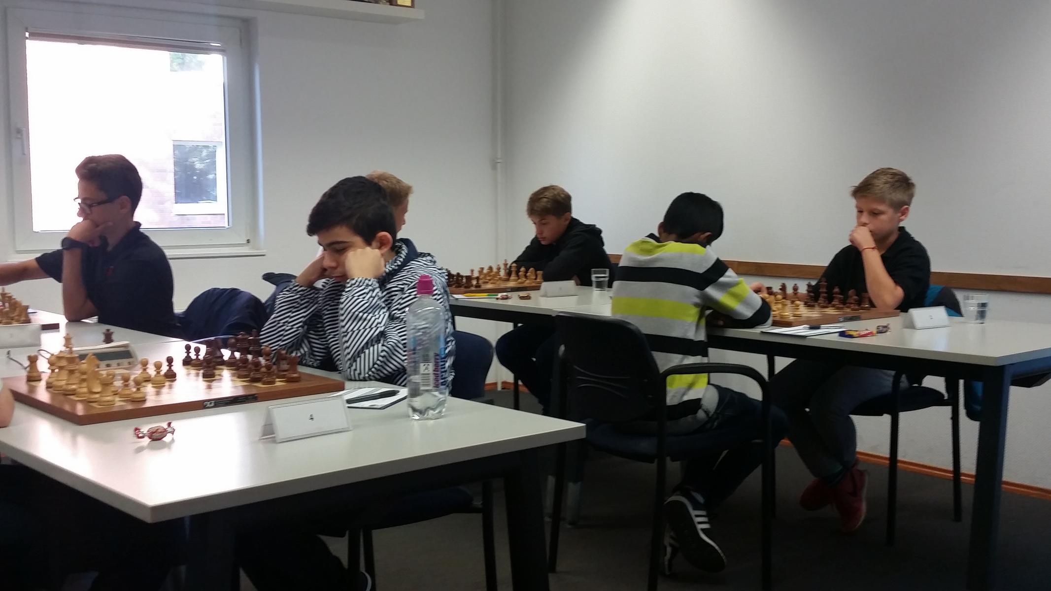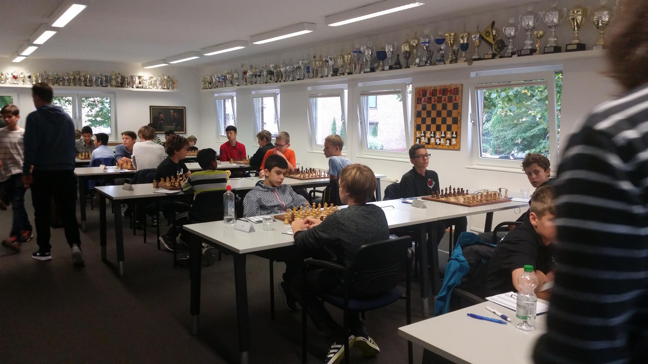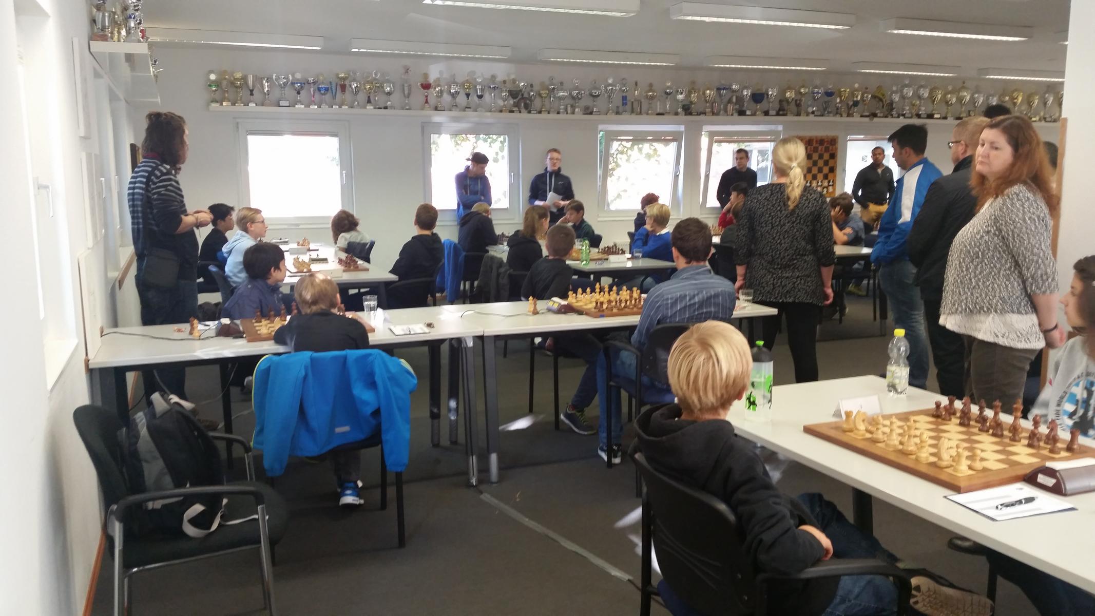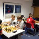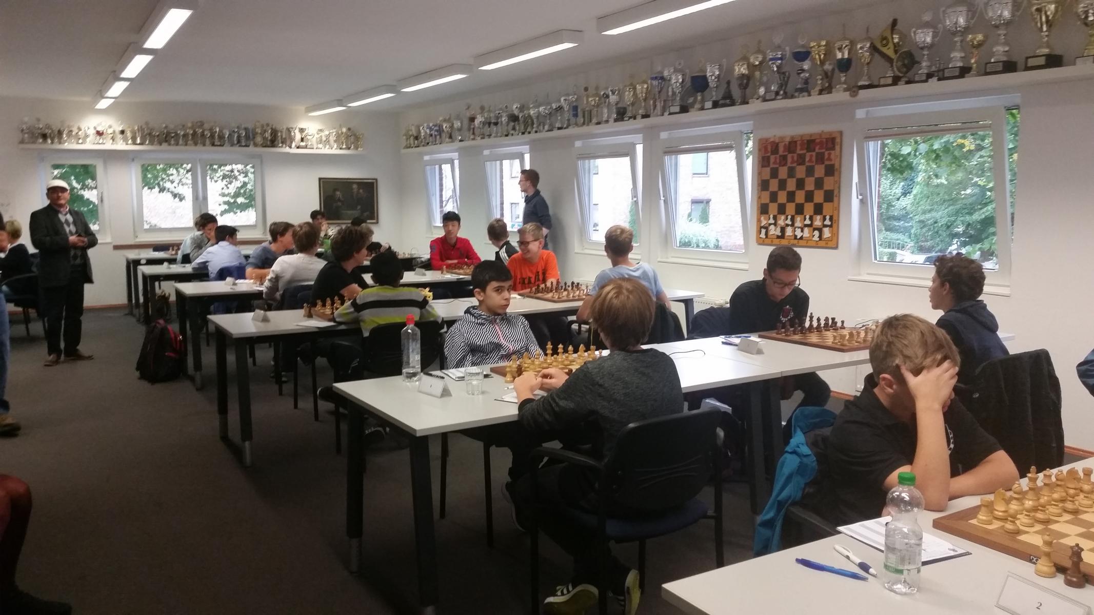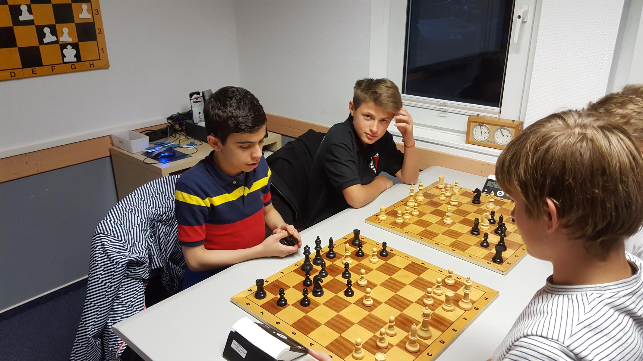 In der 1. Runde wurden wir gegen das Team aus Wien gepaart. Unsere Spieler nahmen im Spielsaal im Obergeschoss an den DGT-Brettern Platz, die eine Liveübertragung ins Internet und in das Erdgeschoss des Klubheims ermöglichten – ein toller Service für die Eltern/Trainer daheim und für die Betreuer vor Ort. Nach einer kurzen Begrüßung durch Organisator Daniel Grötzbach und den HSK-Vorsitzenden Christian Zickelbein ging es dann auch auf den 64 Feldern zur Sache. An allen Brettern waren wir mehr oder weniger deutlicher ELO-Favorit und der Kampf nahm seinen erhofften Verlauf. Relativ ungefährdet wurde ein Punkt nach dem anderen geerntet und am Ende stand ein 4:0-Auftaktsieg für uns zu Buche. Am Nebentisch gab es jedoch eine dicke Überraschung – die dänische Auswahl besiegte die zwar nicht in Bestbesetzung angetretene, aber trotzdem noch immer nominell stärkere Mannschaft des HSK mit 2,5-1,5.