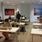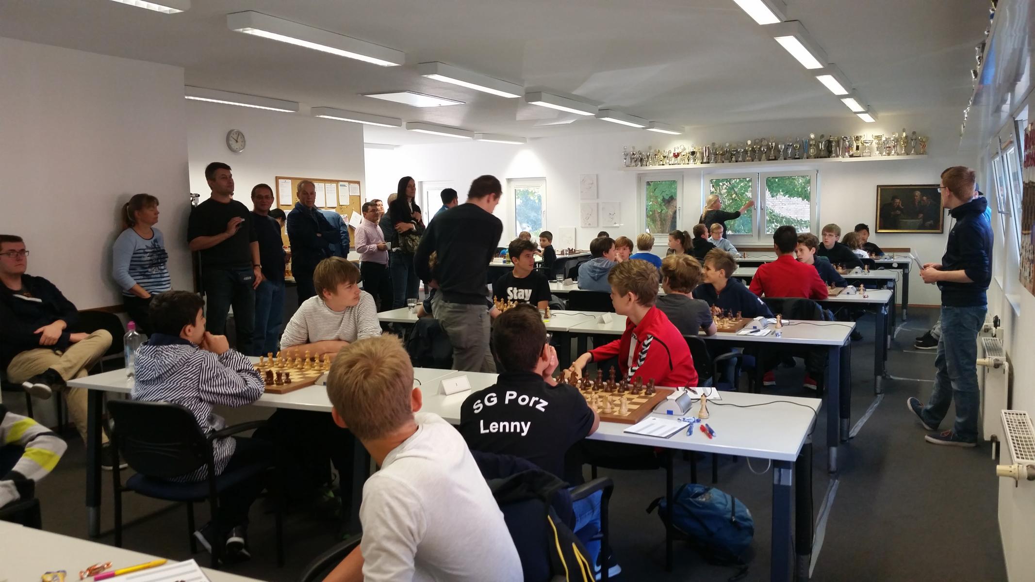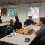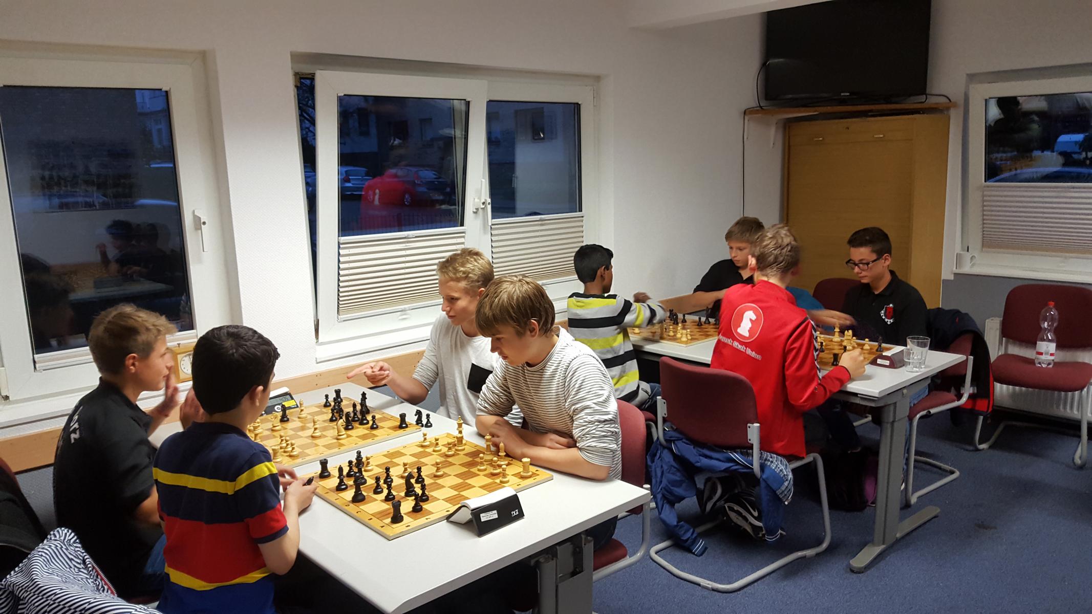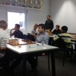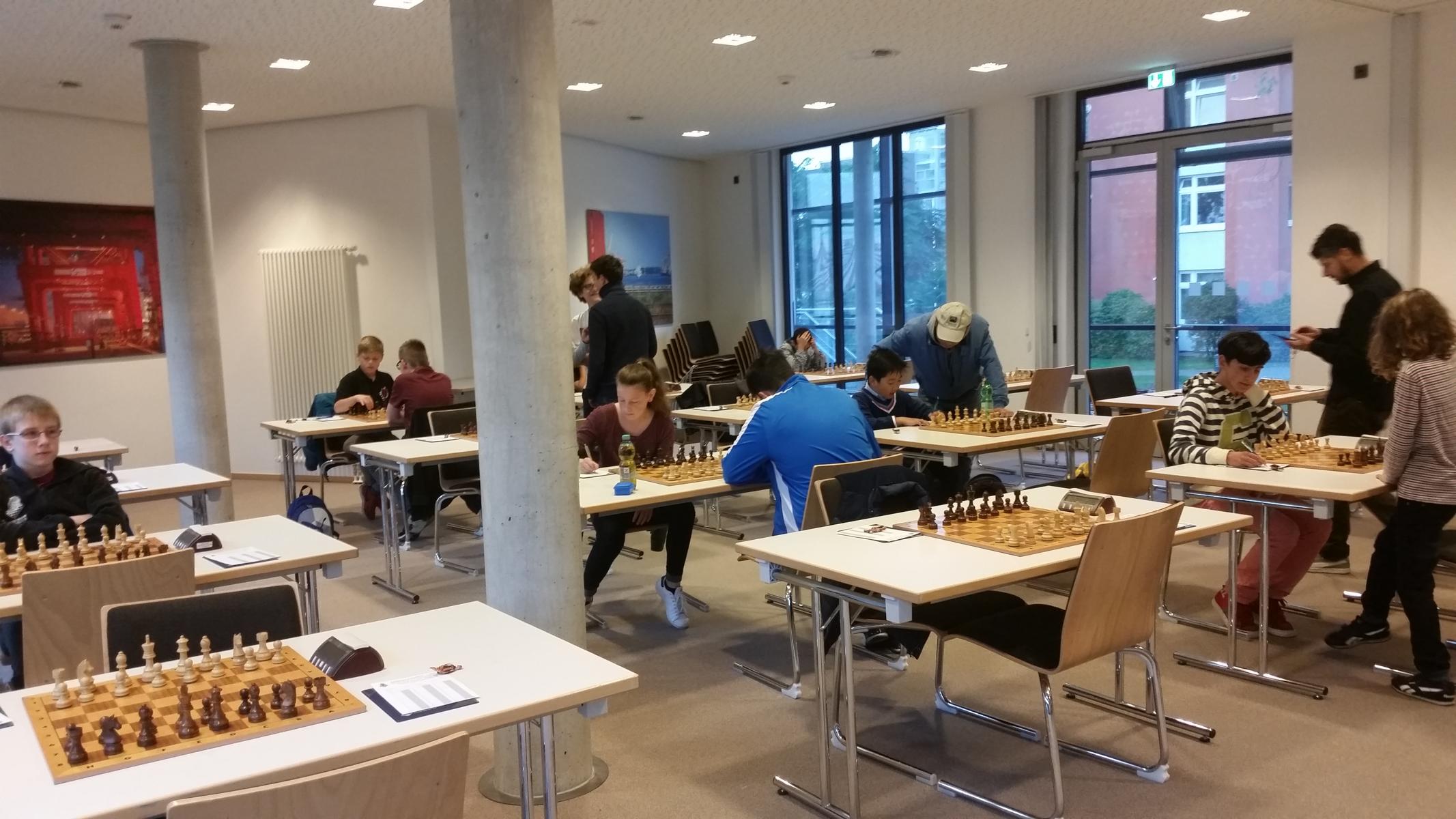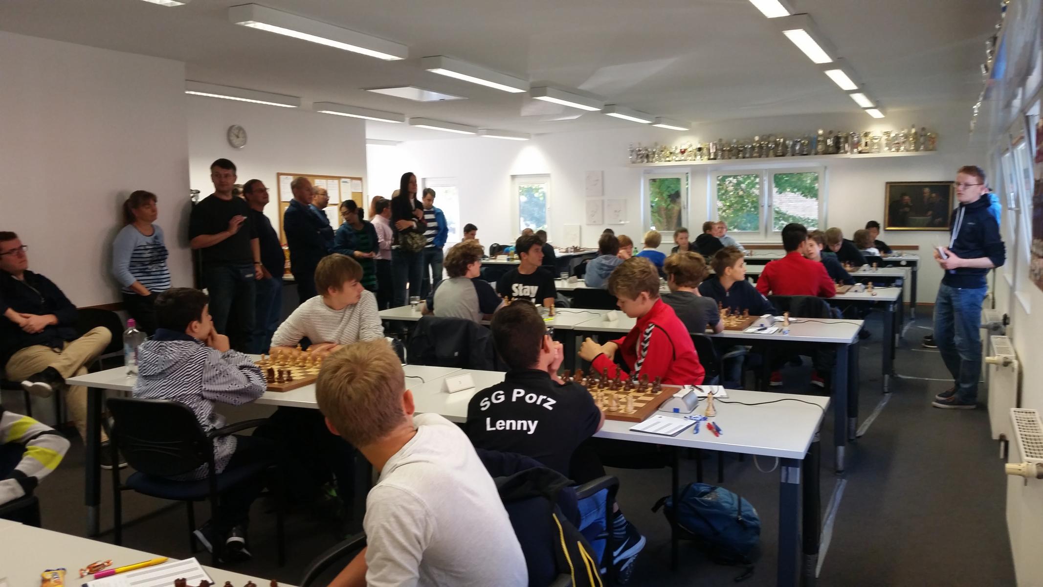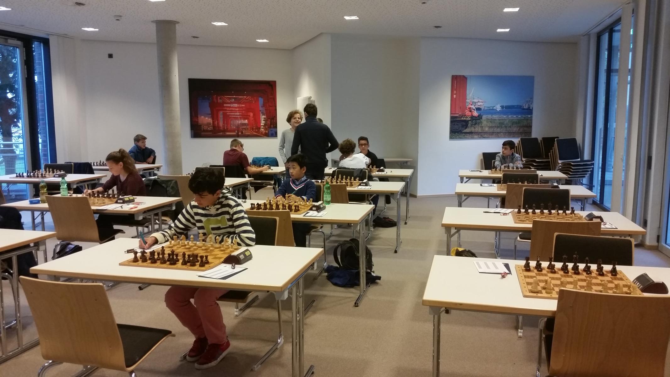 In der 1. Runde wurden wir gegen das Team aus Wien gepaart. Unsere Spieler nahmen im Spielsaal im Obergeschoss an den DGT-Brettern Platz, die eine Liveübertragung ins Internet und in das Erdgeschoss des Klubheims ermöglichten – ein toller Service für die Eltern/Trainer daheim und für die Betreuer vor Ort. Nach einer kurzen Begrüßung durch Organisator Daniel Grötzbach und den HSK-Vorsitzenden Christian Zickelbein ging es dann auch auf den 64 Feldern zur Sache. An allen Brettern waren wir mehr oder weniger deutlicher ELO-Favorit und der Kampf nahm seinen erhofften Verlauf. Relativ ungefährdet wurde ein Punkt nach dem anderen geerntet und am Ende stand ein 4:0-Auftaktsieg für uns zu Buche. Am Nebentisch gab es jedoch eine dicke Überraschung – die dänische Auswahl besiegte die zwar nicht in Bestbesetzung angetretene, aber trotzdem noch immer nominell stärkere Mannschaft des HSK mit 2,5-1,5.