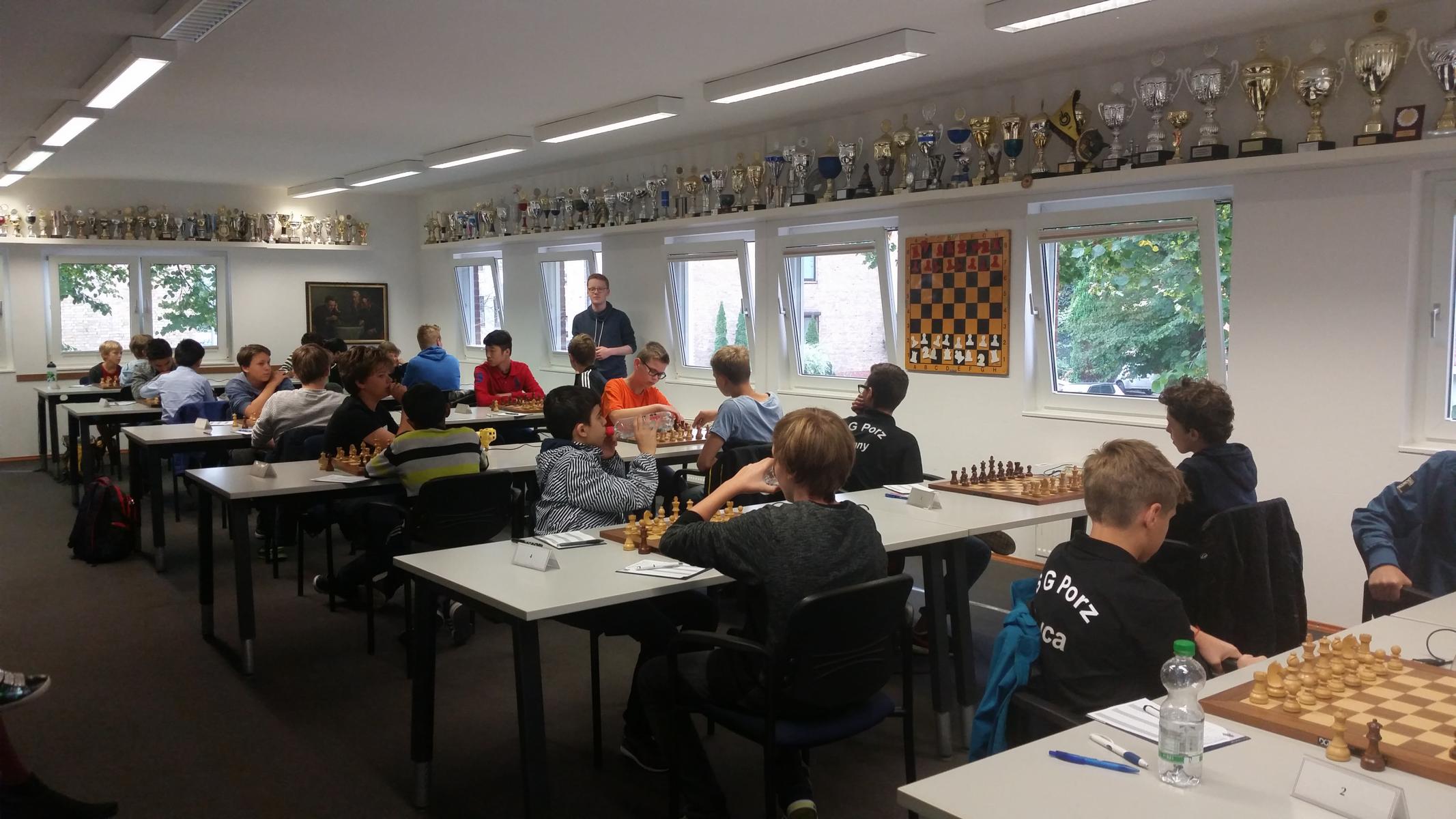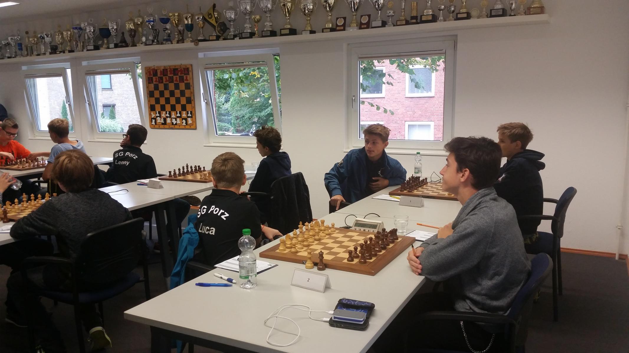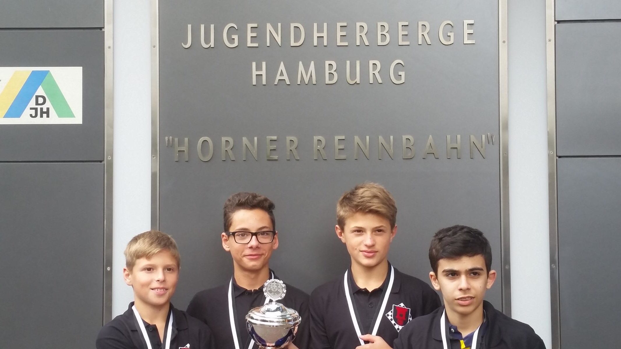 Über das lange Wochenende am Tag der deutschen Einheit (30.09.-03.10.2016) hat eine Porzer U14-Mannschaft in Hamburg am 8. Leo-Meise-Gedenkturnier teilgenommen. Bei dieser Veranstaltung, die in Erinnerung an einen mit nur 18 Jahren verstorbenen Jugendtrainer vom Hamburger Schachklub (HSK) ausgerichtet wird, werden nationale und internationale 4er-Spitzenmannschaften der Altersklassen U12 und U14 zu einem vollrundigen Turnier über drei Runden und einem reichhaltigen Rahmenprogramm eingeladen. Der HSK hat unsere Mannschaft als amtierenden Deutschen U12-Meister um die Teilnahme gebeten und wir sind dieser Einladung gerne nachgekommen. Mit Alexander und Luca Suvorov sowie Lennert Zyla konnten wir auch drei Jungs der Meistermannschaft für das Turnier begeistern, als vierter Mann sprang sehr kurzfristig nach einer krankheitsbedingten Absage unser passives Mitglied Idris Asadzade ein. Begleitet wurde die Mannschaft von Uli Thiemonds und Jeffrey Paulus.