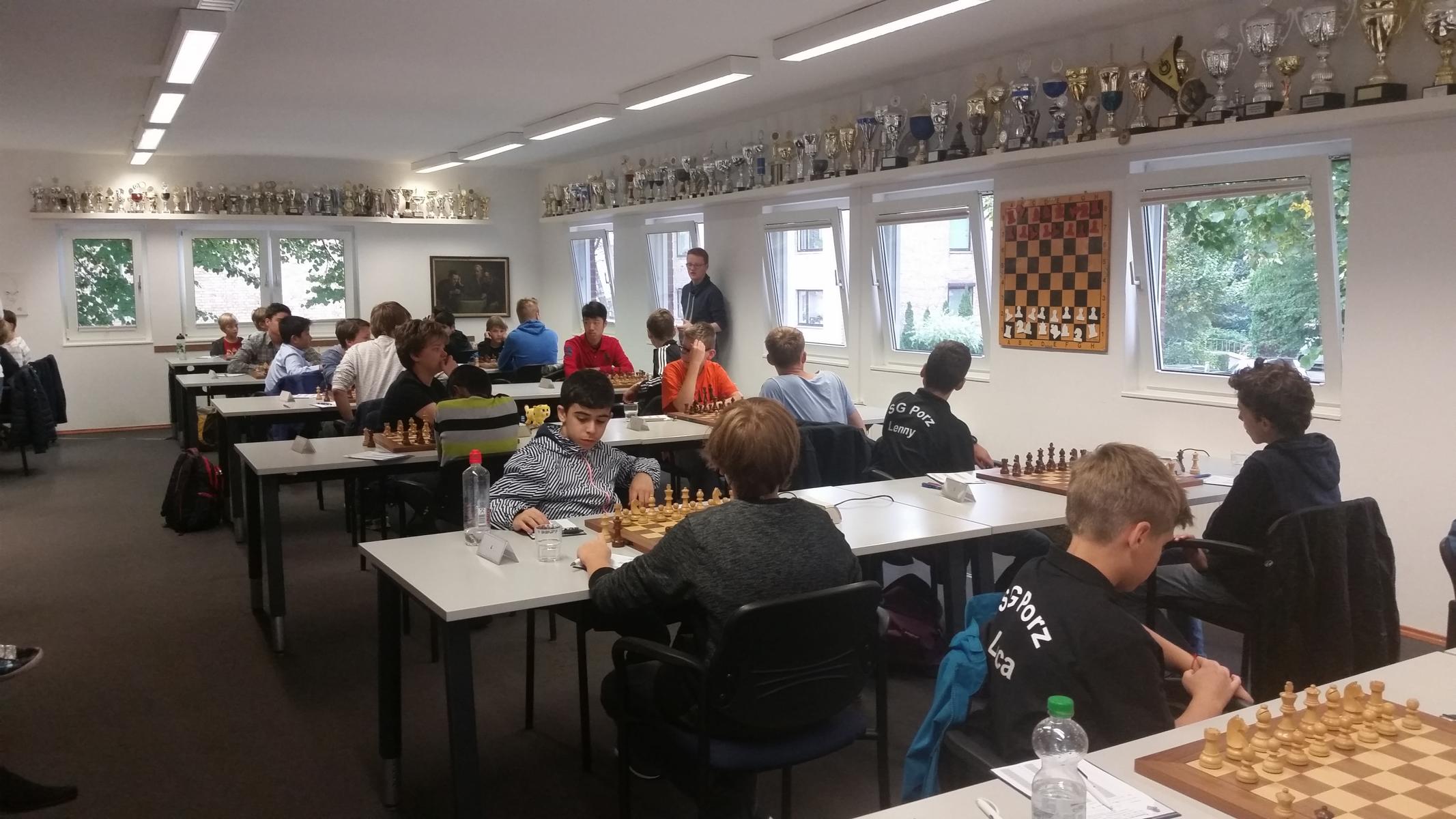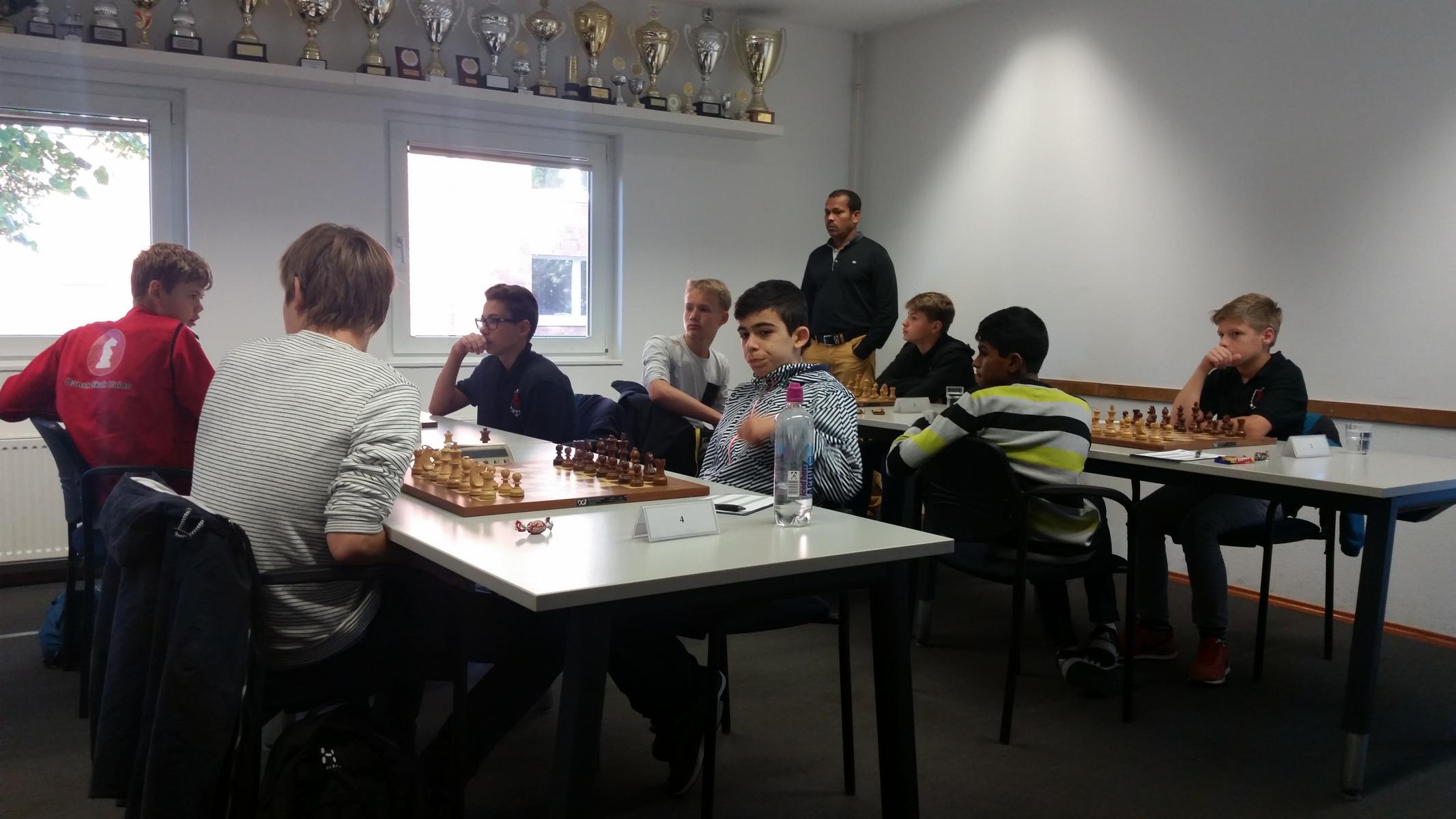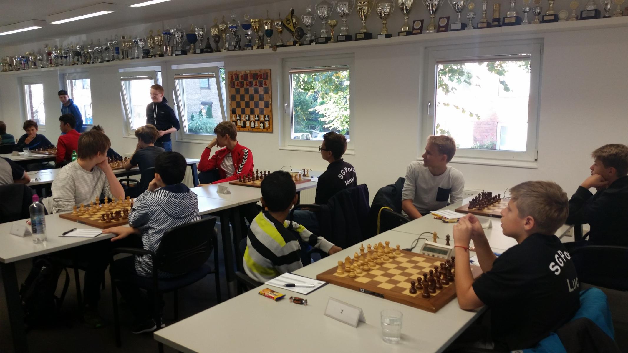 Ausgeschlafen ging es am Samstagmorgen dann zur 1. Runde in das wenige Kilometer entfernte Vereinsheim des HSK. Ein Blick auf die Startranglisten zeigte, dass ein attraktives Feld zusammengestellt werden konnte. In der U12 waren neben dem HSK noch ein Team aus Wien und Stockholm sowie (aufgrund einer kurzfristigen Absage) noch eine Hamburger „Best of“-Auswahl am Start. In unserer Altersklasse U14 war das Team des HSK in Bestbesetzung leichter Favorit, dahinter folgte die Porzer Mannschaft. Abgerundet wurde das Feld durch eine sehr ausgeglichene Nationalauswahl aus Dänemark (geschwächt durch die Teilnahme von zwei Spielern an der parallel laufenden Jugend-WM in Khanty-Mansiysk) sowie ein Team aus Wien, das jedoch eher als Außenseiter anzusehen war.