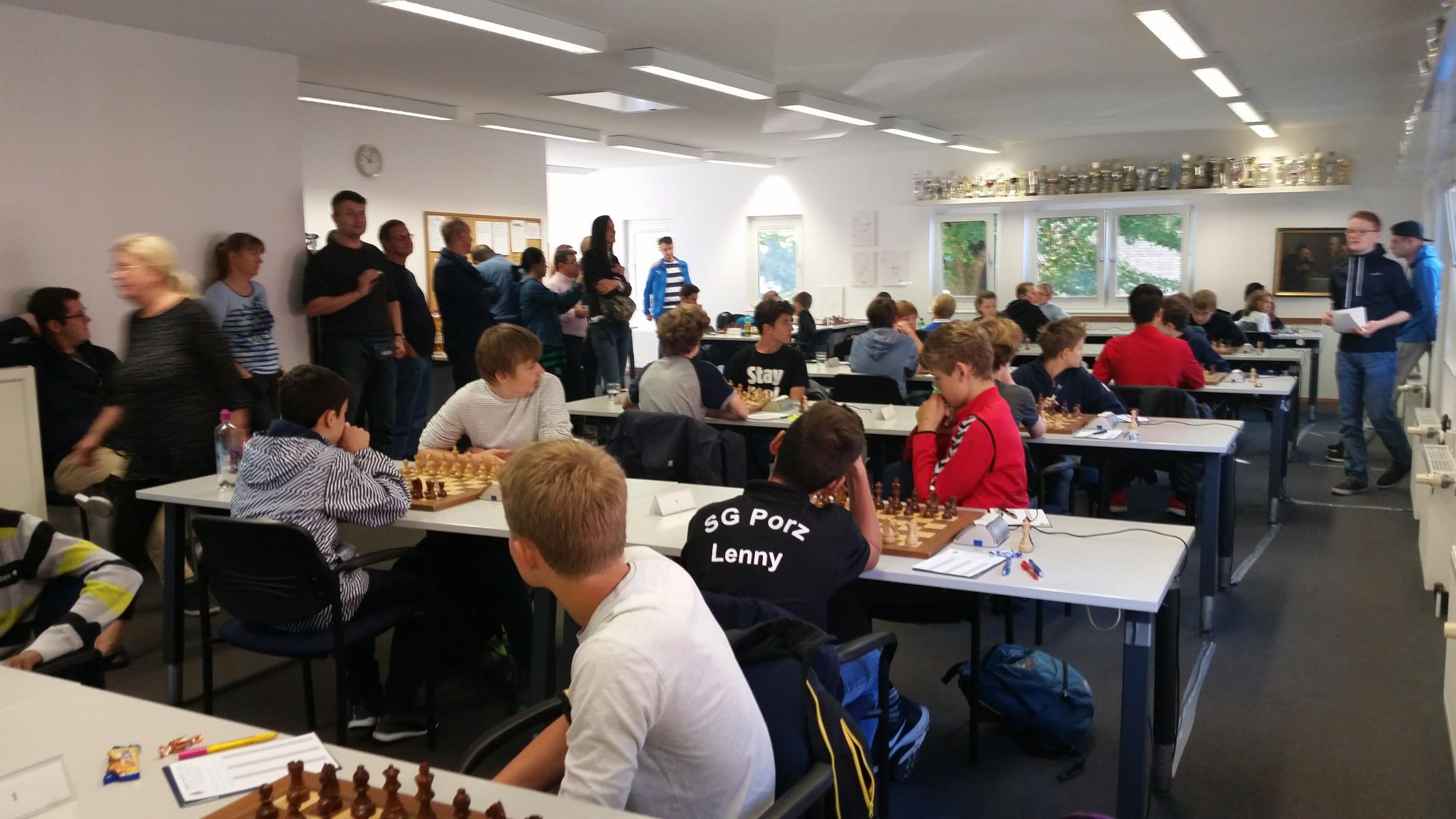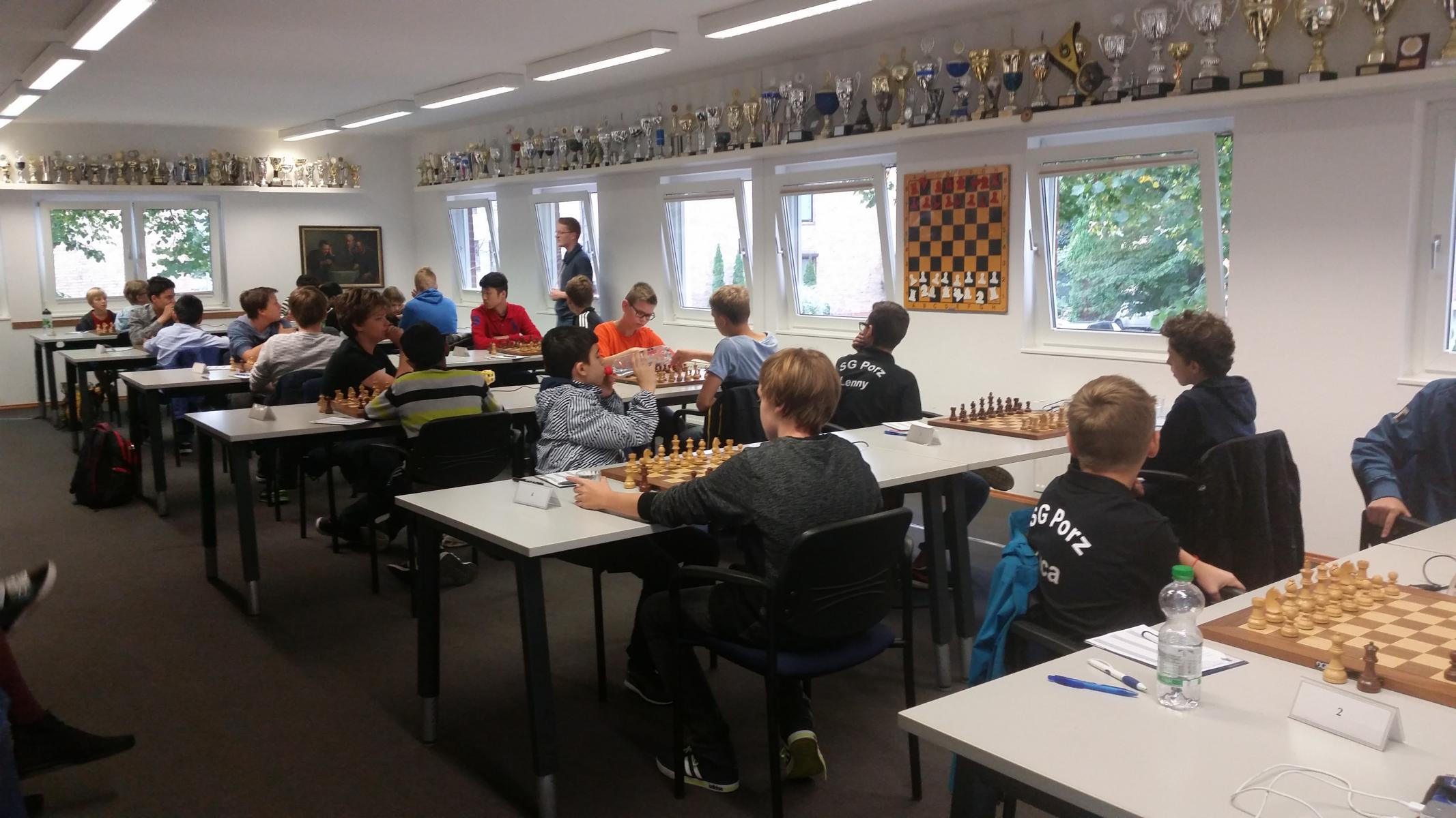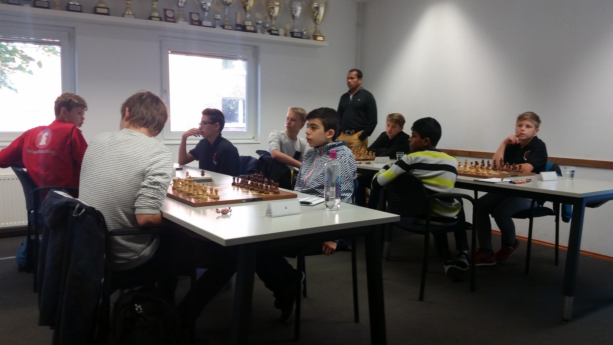 Ausgeschlafen ging es am Samstagmorgen dann zur 1. Runde in das wenige Kilometer entfernte Vereinsheim des HSK. Ein Blick auf die Startranglisten zeigte, dass ein attraktives Feld zusammengestellt werden konnte. In der U12 waren neben dem HSK noch ein Team aus Wien und Stockholm sowie (aufgrund einer kurzfristigen Absage) noch eine Hamburger „Best of“-Auswahl am Start. In unserer Altersklasse U14 war das Team des HSK in Bestbesetzung leichter Favorit, dahinter folgte die Porzer Mannschaft. Abgerundet wurde das Feld durch eine sehr ausgeglichene Nationalauswahl aus Dänemark (geschwächt durch die Teilnahme von zwei Spielern an der parallel laufenden Jugend-WM in Khanty-Mansiysk) sowie ein Team aus Wien, das jedoch eher als Außenseiter anzusehen war.