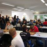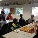 Abends kehrten wir zum HSK-Klubheim zurück, wo ein gemeinsames Grillen den Tagesabschluss bilden sollte. Nach dem Essen wurden unsere Jungs jedoch vom dänischen Team zur Revanche aufgefordert, diesmal allerdings im Tandemschach. In wechselnder Besetzung erwiesen sich die Porzer jedoch den Berichten der Jungs zufolge unverändert als die erfolgreicheren Teams.