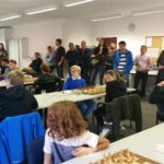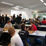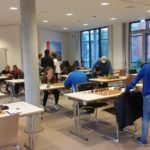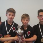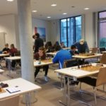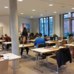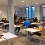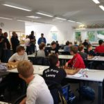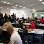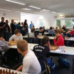 Sonntagmorgen ging es dann mit der 2. Runde des Turniers weiter und es folgte das Spitzenspiel gegen die Dansk Skak Union. Durch den Vortagessieg der Dänen gegen Hamburg waren unsere Jungs gewarnt und nahmen die Gegner, obwohl nominell alle nur mit ELO-Zahlen zwischen 1800 und 1900 geratet waren, sehr ernst. Alexander legte mit den weißen Steinen eine hervorragende und überzeugende Partie hin, die den Gegner nach nur zwei Stunden zur Aufgabe bewegte. Dann tat sich lange wenig, aber bei Idris‘ Franzosen zeichneten sich klare positionelle Nachteile ab, die der Gegner in einen überzeugenden Angriff münden ließ, der den Dänen den Ausgleich brachte. In der Zeitnotphase konnte Luca dann seine kleinen Vorteile verdichten und in entscheidenden Vorteil ummünzen. Nach der Zeitkontrolle vermeldete Lenny ebenfalls Materialgewinn, sodass wir mit 3:1 auch den zweiten Sieg im zweiten Spiel verbuchen konnten. Im Parallelspiel gewann Hamburg mit demselben Ergebnis gegen Wien, womit vor der letzten Runde klar war, dass uns ein Brettpunkt zum Turniersieg reichten würde.