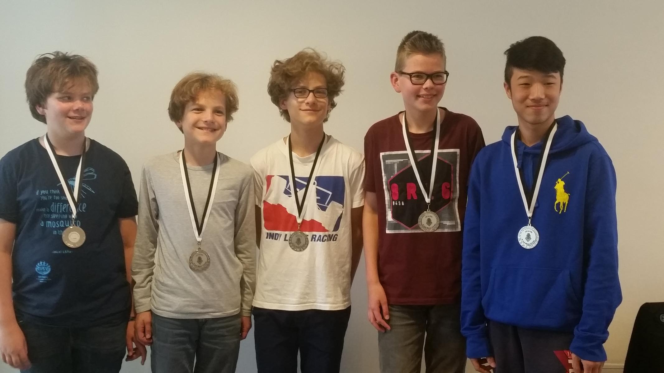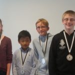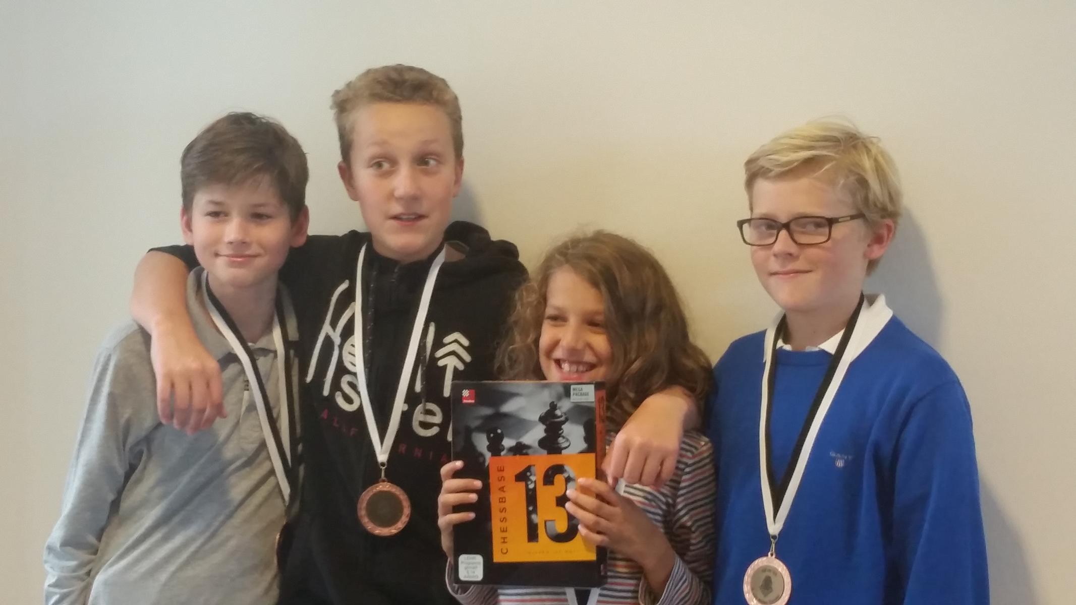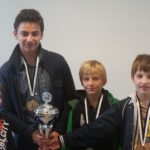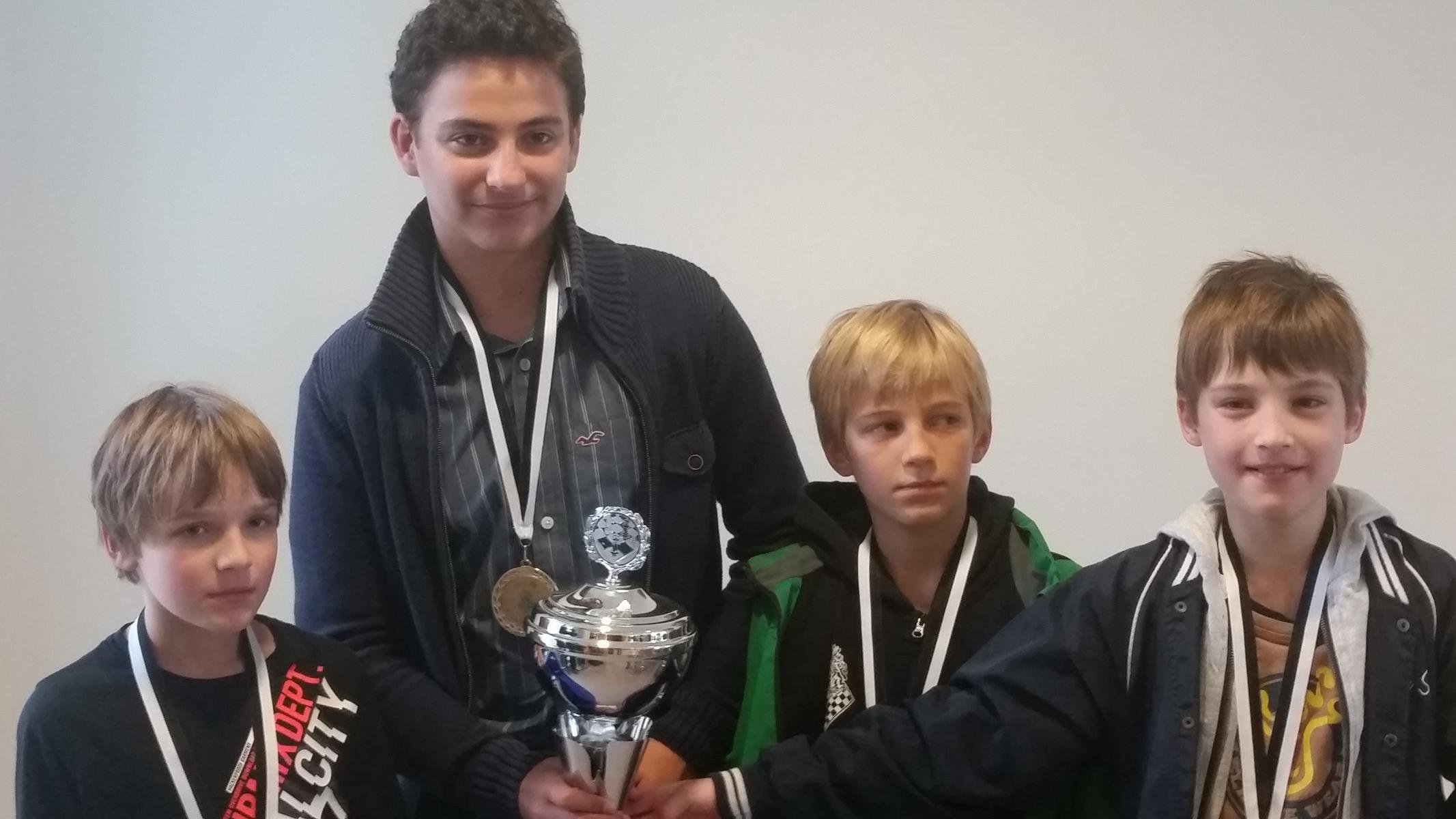 Am Spitzenbrett traf Alexander mit Weiß auf die Deutsche Nr. 1 in der Altersklasse U14, Luis Engel, der eine mächtige ELO von 2370 als Visitenkarte vorweisen konnte. Alexander spielte jedoch wie entfesselt und konnte nach etwa drei Stunden eine klare Gewinnstellung erreichen, die er in ein Turmendspiel mit zwei Mehrbauern transformierte. Es schien nur noch eine Frage der Zeit zu sein, bis wir den Turniersieg feiern konnten, doch dann verspeiste Alex einen dritten Bauern, der seinen Turm jedoch so ins Abseits beförderte, dass Luis trotz drei Bauern weniger viel Aktivität entfalten konnte und mit präziser Verteidigung die Partie gerade noch ins Remis steuern konnte – schade! Dadurch wurde der Kampf noch einmal richtig spannend, denn in der Zwischenzeit hatte Lennert seine schwierige Stellung in Zeitnot nicht zusammenhalten können, sodass wir mit 0,5:1,5 in Rückstand gerieten. Bei Idris war vollkommenes Chaos auf dem Brett, und die Betreuer beiderseits rätselten, wie das vermeintlich entstehende Endspiel Turm gegen vier Bauern, die Idris noch übrig hatte, zu bewerten wäre. Der Hamburger Spieler fand jedoch einen Weg, seinen letzten Bauern zu einer Dame umzuwandeln, welche den verbliebenen Bauern von Idris überlegen war. Damit war der Kampf bei einem Zwischenstand von 0,5:2,5 schon verloren, und es lag an Luca, zumindest noch den Turniersieg abzusichern. In einer komplexen strategischen Stellung verblieben beiden Spielern nur noch weniger als zehn Minuten für den Rest der Partie. Durch geschicktes Lavieren mit der Dame konnte Luca diese jedoch in die feindlichen Reihen eindringen lassen, wo sie einen Bauern nach dem anderen schlug. Kurz darauf gab Lucas Gegner auf und unser Mister 100% in Hamburg machte zur allgemeinen Erleichterung den Turniersieg perfekt. Neben einem dicken Siegerpokal erhielten unsere Spieler noch verschiedene Sachpreise aus dem Hause Chessbase.
