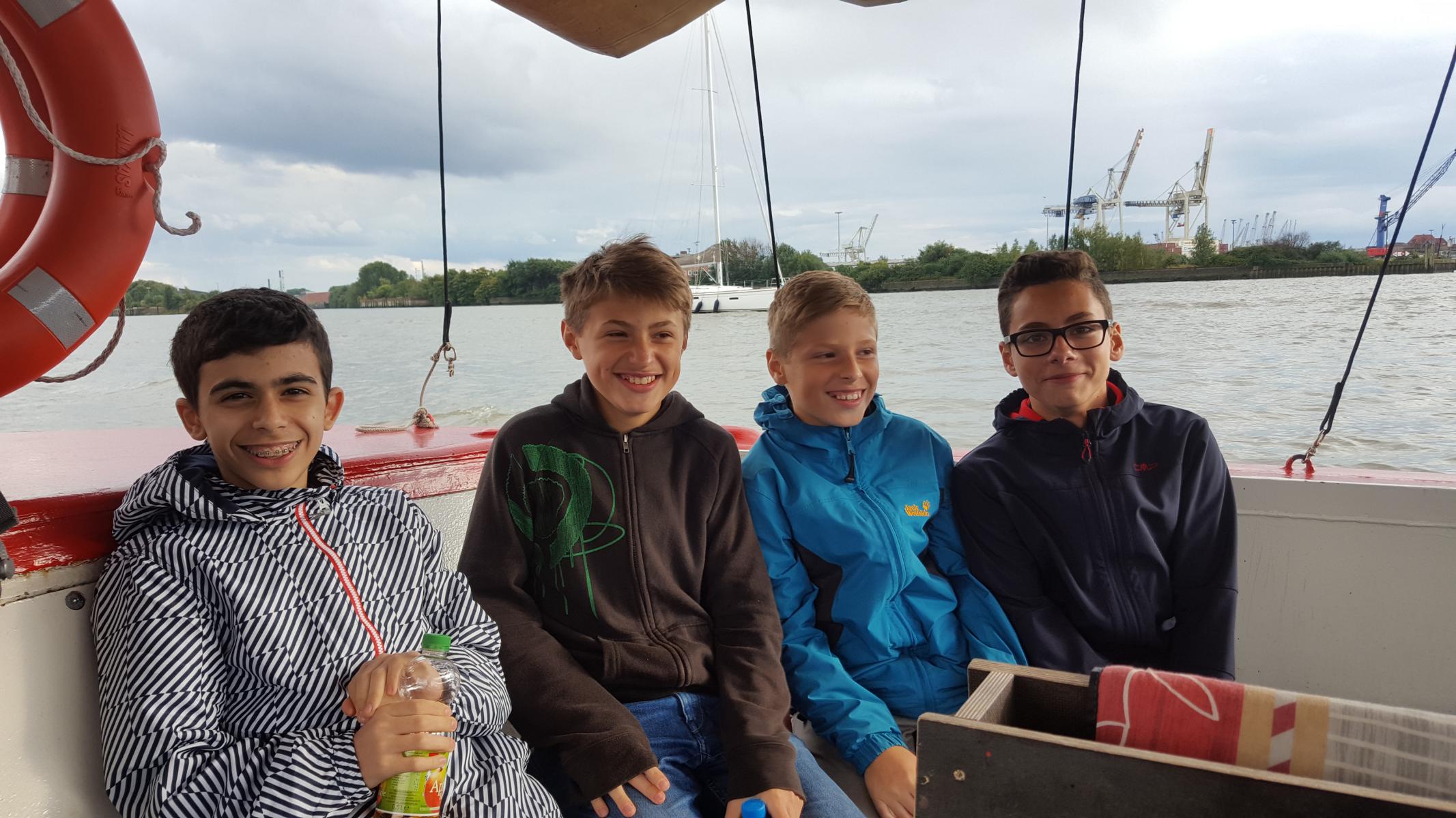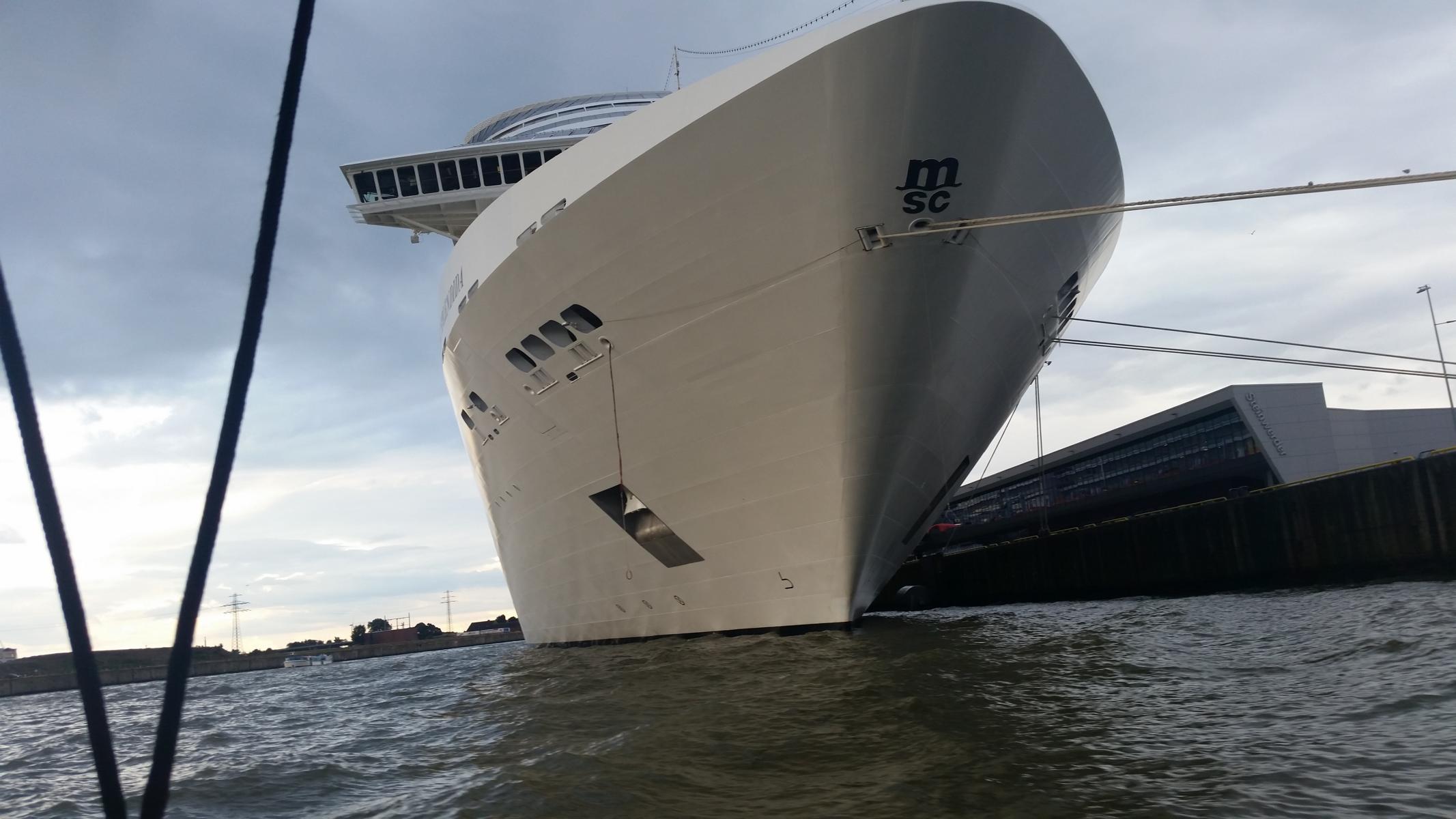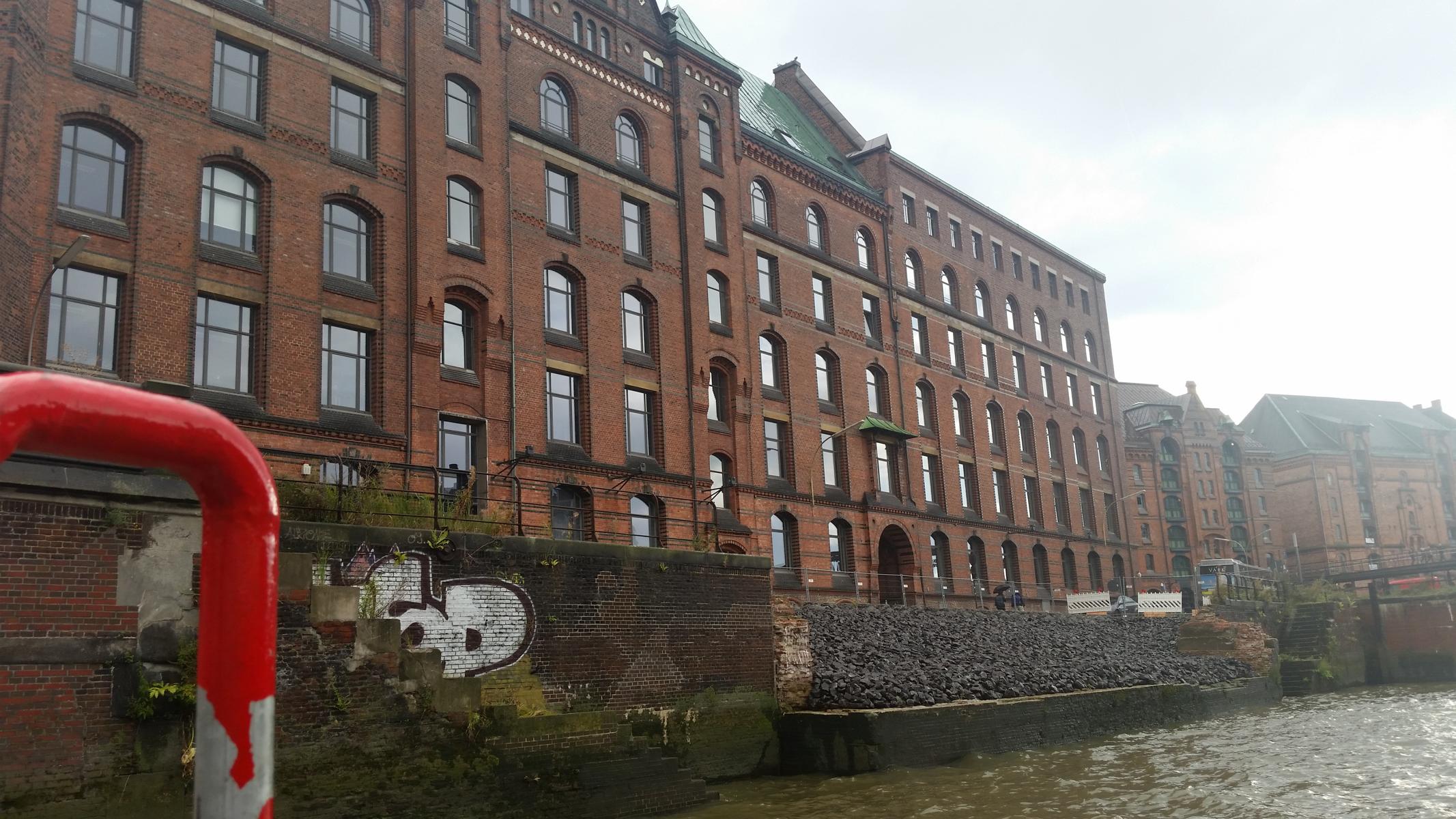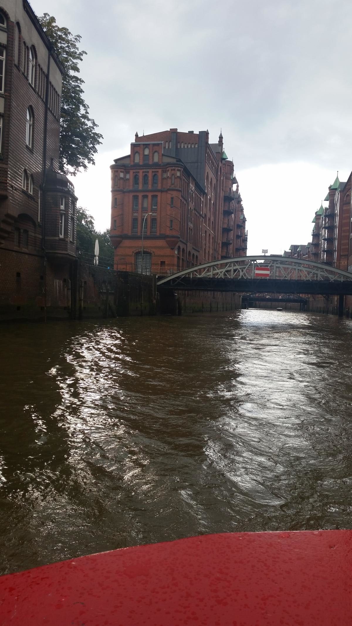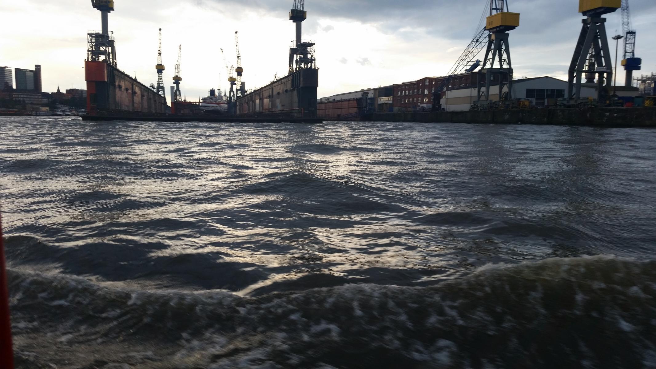 Am Nachmittag folgte der zweite Teil des Rahmenprogramms, der eine Hafenrundfahrt durch die Speicherstadt und den Hamburger Hafen in einer eigens angemieteten Barkasse vorsah. Der eher kulturelle Teil der Fahrt durch die Speicherstadt war für die Betreuer interessanter als für unsere Jungs, aber im weiteren Verlauf fuhr das Boot auch durch eine Schleuse und vorbei an einem Kreuzfahrtschiff und einem 360 Meter langen Containerschiff. Spätestens da waren wieder staunende Kinderaugen zu sehen und die Fahrt als Erfolg zu werten.
