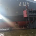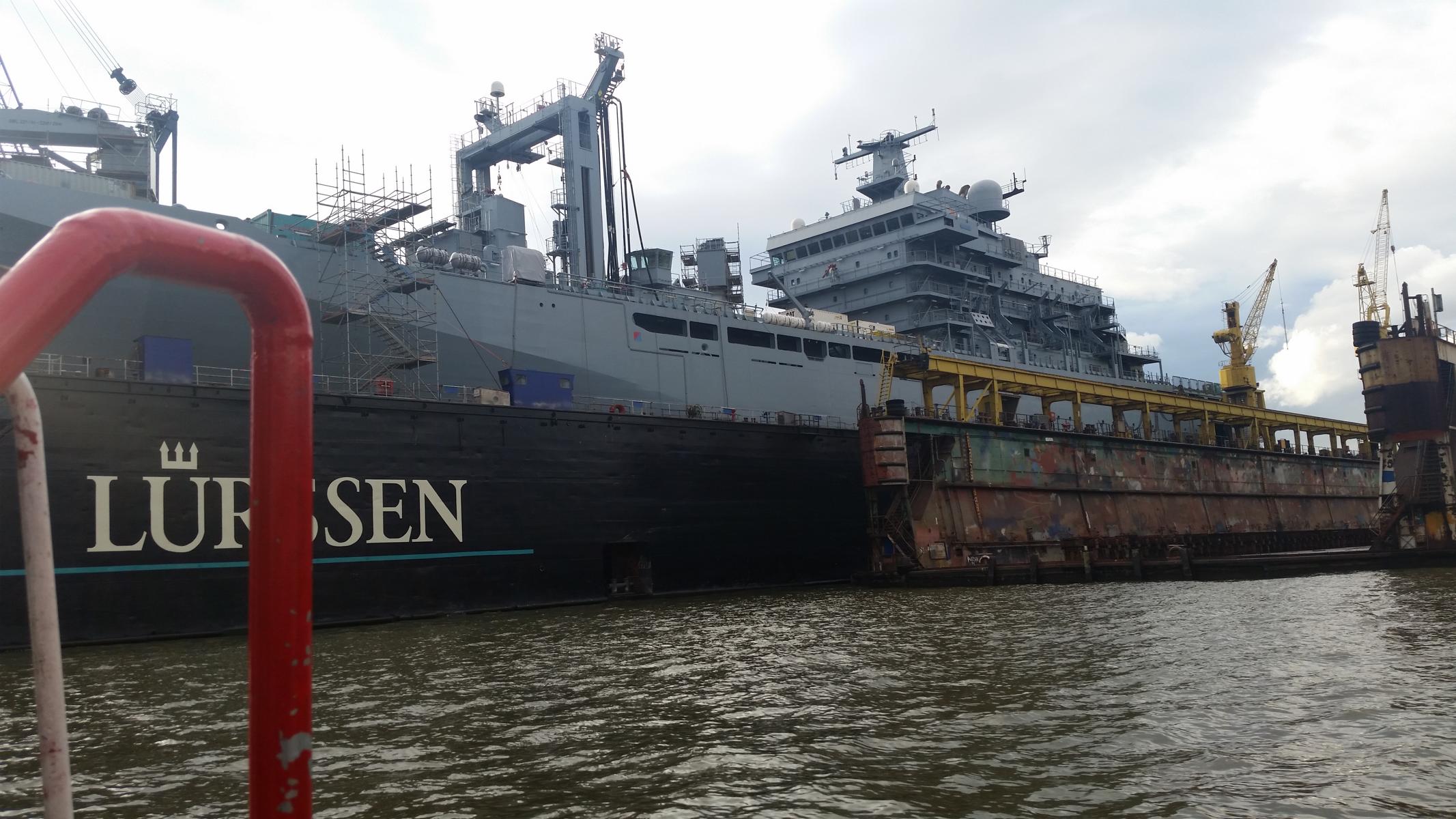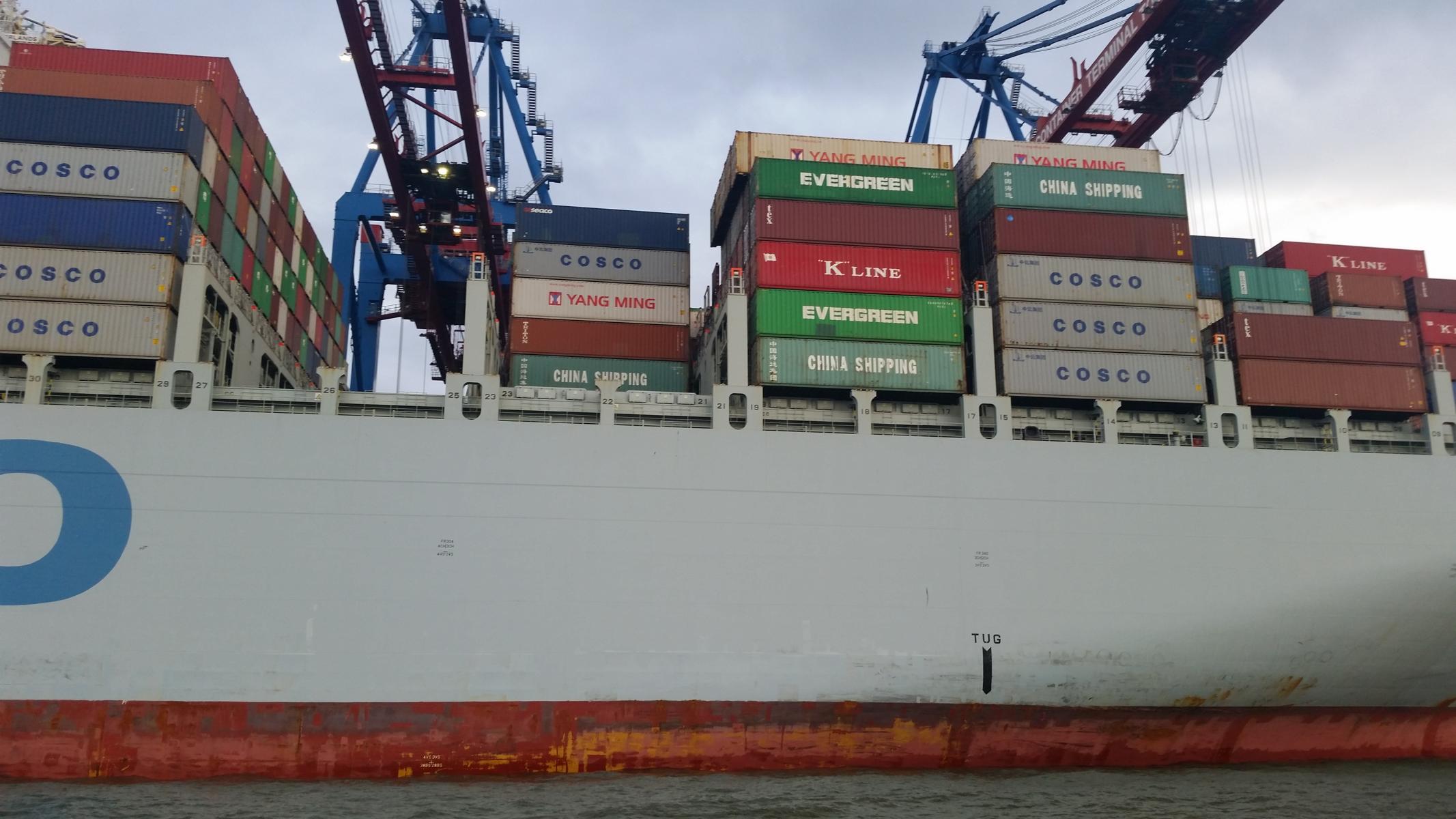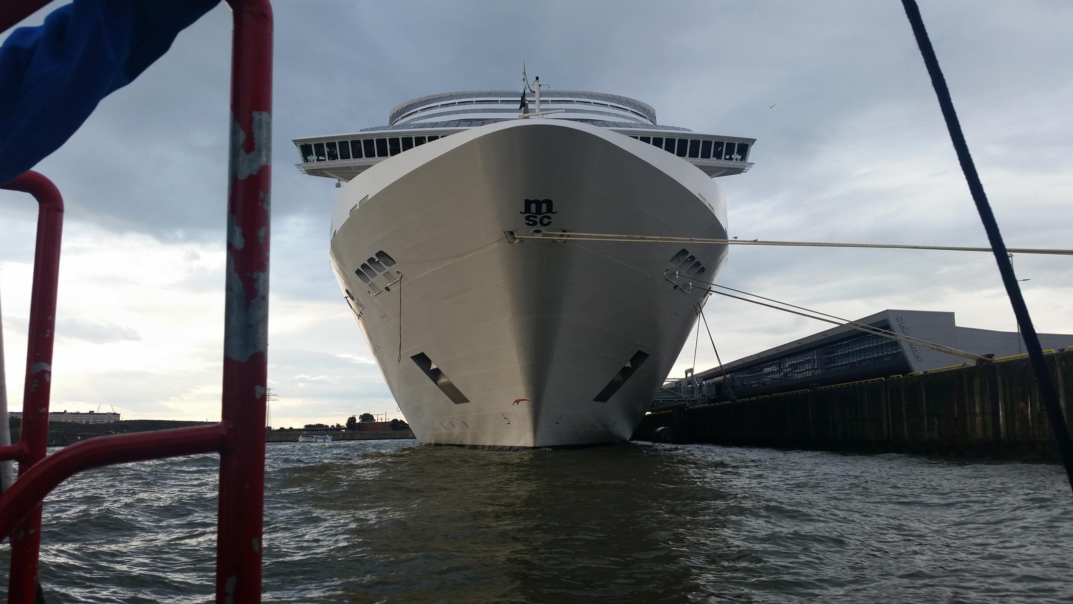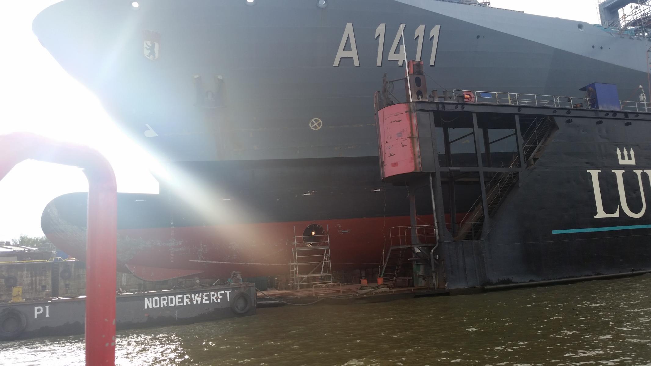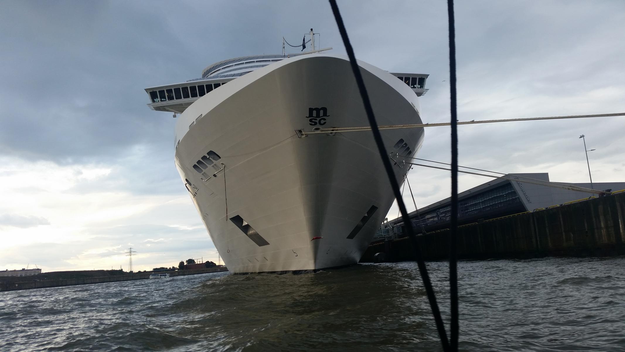 Am Nachmittag folgte der zweite Teil des Rahmenprogramms, der eine Hafenrundfahrt durch die Speicherstadt und den Hamburger Hafen in einer eigens angemieteten Barkasse vorsah. Der eher kulturelle Teil der Fahrt durch die Speicherstadt war für die Betreuer interessanter als für unsere Jungs, aber im weiteren Verlauf fuhr das Boot auch durch eine Schleuse und vorbei an einem Kreuzfahrtschiff und einem 360 Meter langen Containerschiff. Spätestens da waren wieder staunende Kinderaugen zu sehen und die Fahrt als Erfolg zu werten.