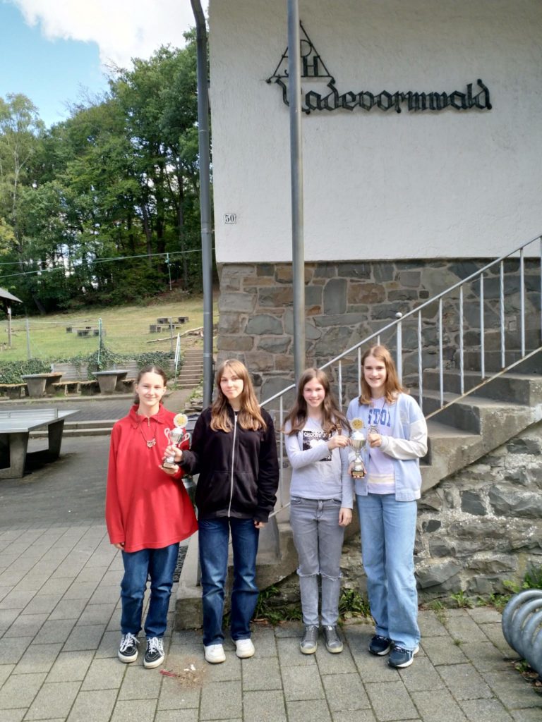 Bei dieser Meisterschaft wurden in der Jugendherberge Radevormwald unter 4 teilnehmenden Mannschaften 3 Qualifikationsplätze zur DVM ausgespielt. Die Zielsetzung war somit klar: Keine unserer beiden Mannschaften sollte hier Letzte werden, alles andere war primär. Dieses Ziel wurde mit Platz 1 und Platz 2 sogar übertroffen, auch wenn es sehr viel knapper war, als die Platzierungen vermuten lassen. Einen halben Brettpunkt für Porz 1 im letzten Mannschaftskampf gegen SG Raesfeld/Erle weniger und nur eine Mannschaft hätte sich qualifiziert. Aber es hat ja glücklicherweise gereicht… Gut gemacht, Mädels!