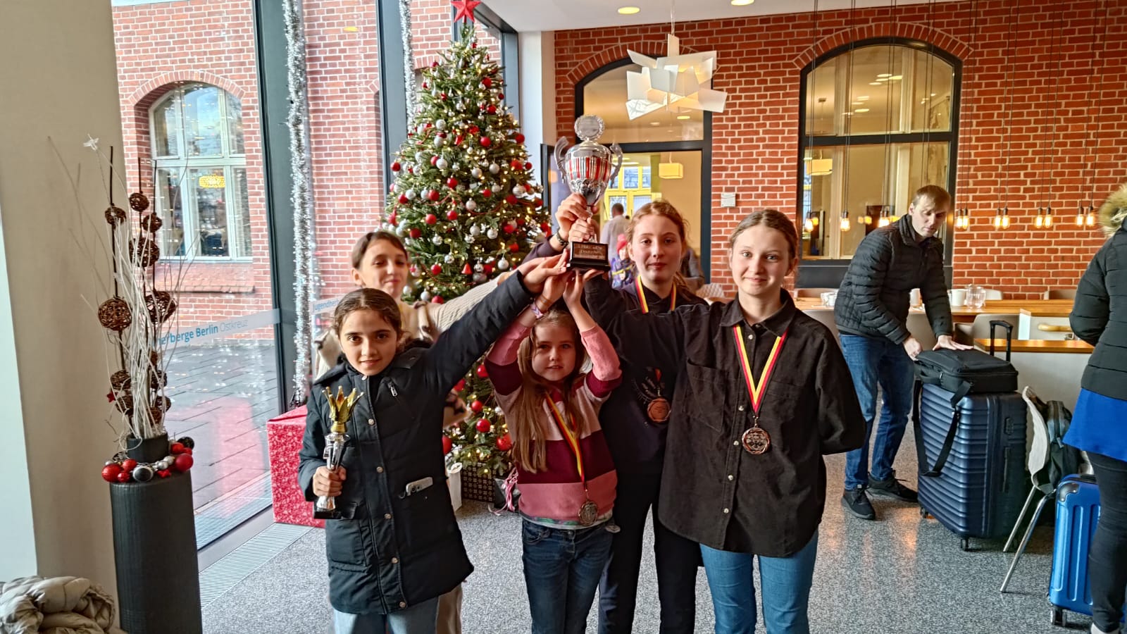 Welch schöner Jahresabschluss für unsere U12-Mädchenmannschaft! Vom 26.-29.12.2022 fand die DVM U12w 2022 in Berlin statt. Als Nr. 9 der Startrangliste gingen wir eher als Außenseiter auf die Medaillenränge ins Rennen. Die Mannschaft wurde von Ramil betreut und auch auf die Partien vorbereitet.