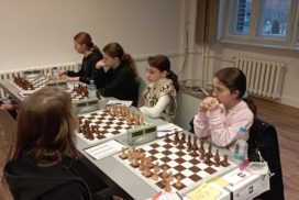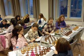 In der 6. Runde war unser Gegner die SchachAkadamiePaderborn, die zu diesem Zeitpunkt mit 1 Mannschaftspunkt vor uns lag. Luna und Dima sorgten für die 2:0-Führung. Es sah also schon mal sehr gut aus! Würde es uns gelingen, die Tabellenführung zu übernehmen? Leider mussten sich sowohl Clara, die zu diesem Zeitpunkt noch ungeschlagen war, als auch Eva am Ende geschlagen geben und der Mannschaftskampf endete „nur“ 2:2 Unentschieden. Wir fielen auf Rang 3 zurück.