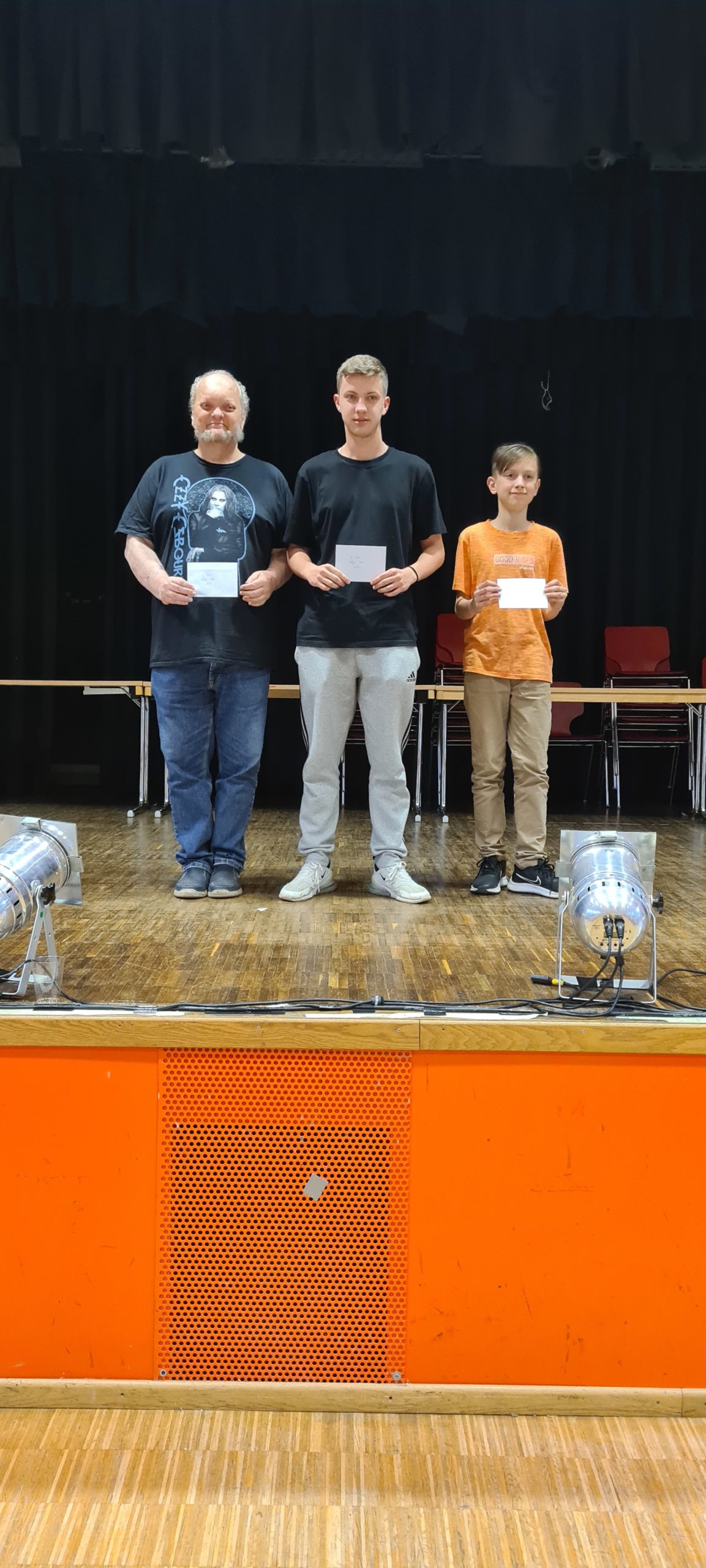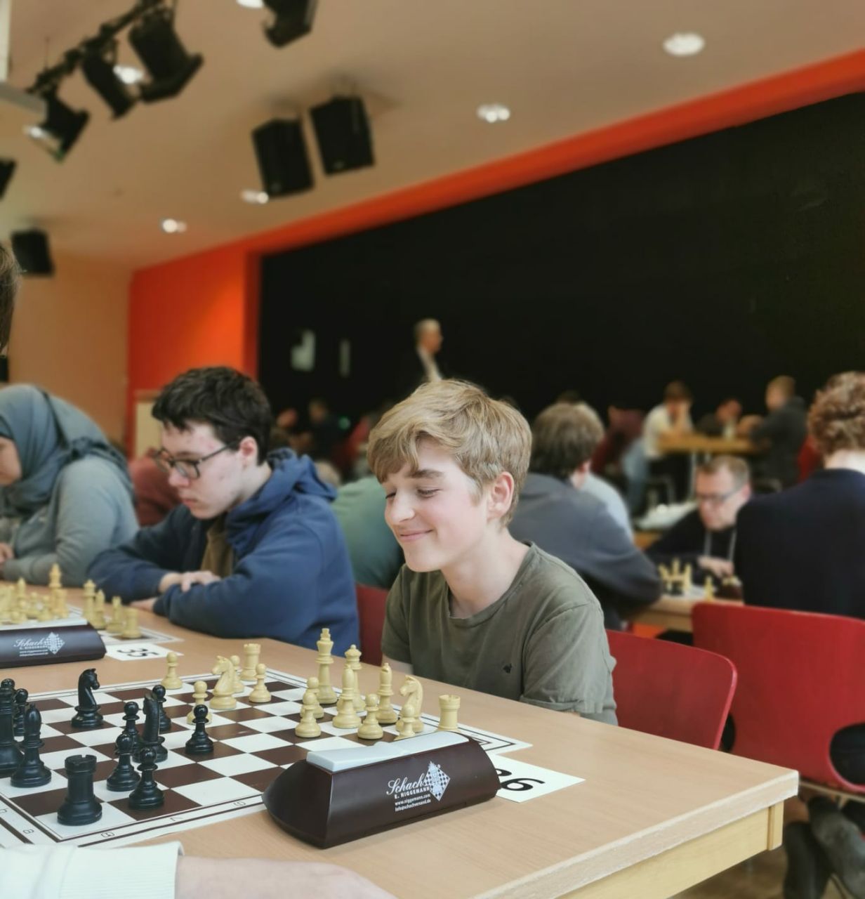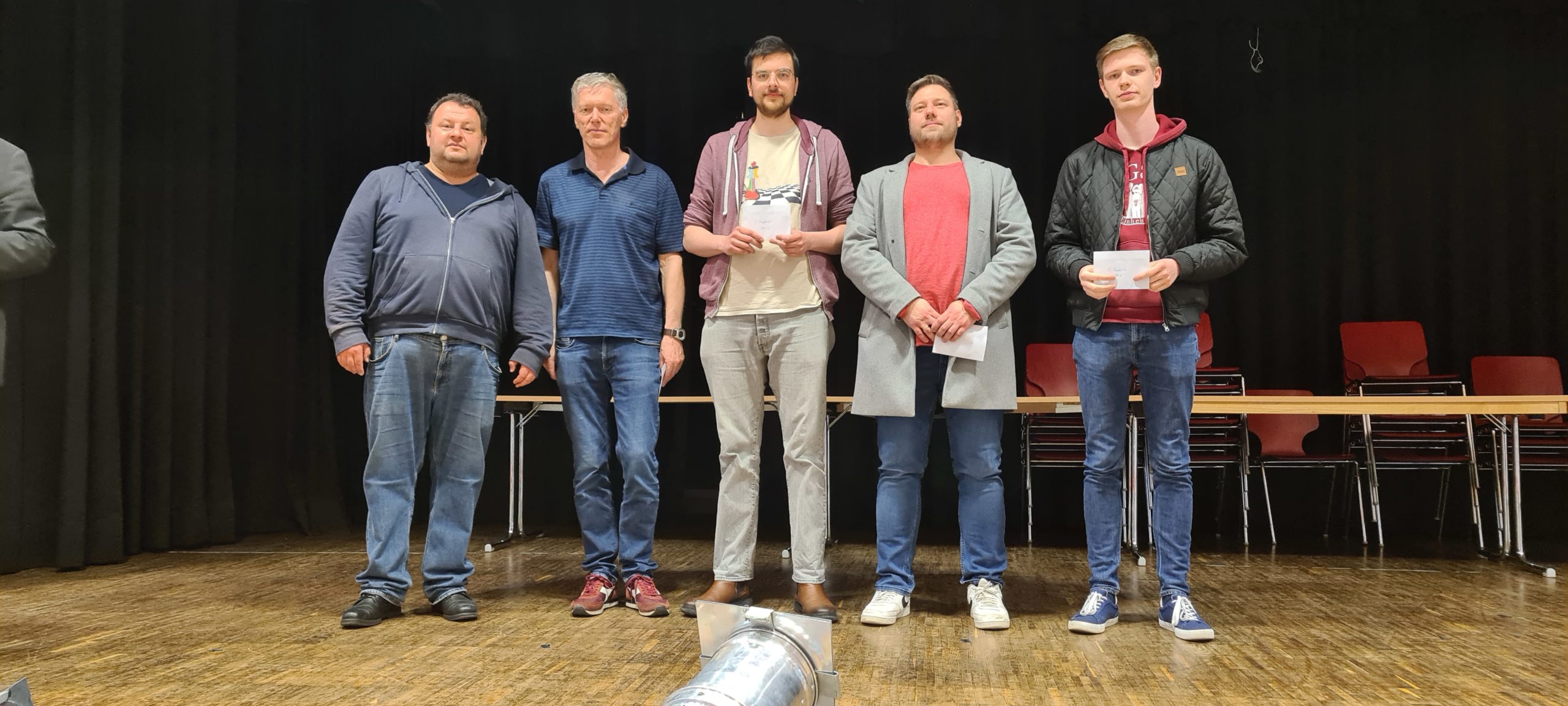 Am vorletzten Sonntag (07.05.) konnte die SG Porz nach dreijähriger Corona-Pause endlich wieder ein großes Schnellschach-Turnier ausrichten. Bedingt durch den Nachholbedarf aufgrund der langen Pause und durch den allgemeinen Boom, den das Schach in dieser Pause erlebt hat, vermuteten wir, dass das Interesse an einem solchen Turnier doch etwas größer ausfallen könnte als vor der Pause. Daher hatten wir uns auf die Suche nach einem Austragungsort gemacht, der mehr Spielern Platz bot als unser eigenes Spiellokal. Nach einigen Telefonaten und Emails stießen wir dabei auf die Aula des Stadtgymnasiums Porz. Wie sich herausstellen sollte, war dies aus mehreren Gründen ein Glücksgriff, doch dazu später mehr. Nach einer ersten Besichtigung und einer etwas oberflächlichen Zählung der vorhandenen Tische und Stühle, veröffentlichten wir die Ausschreibung mit einer Maximal-Teilnehmerzahl von 190. Dies in der etwas naiven (und irrigen) Annahme, dass diese Teilnehmerzahl ja sowieso nicht erreicht werden würde …