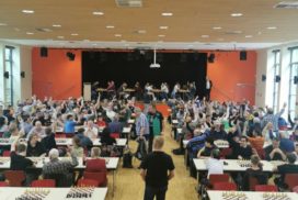 Der Turniertag näherte sich und die Anmeldeliste wurde länger und länger. Am Freitag Nachmittag (also etwas mehr als einen Tag vor dem Turnier) mussten wir dann schließlich die Reißleine ziehen: die Online-Anmeldung wurde gesperrt und eine Reserve-Liste eröffnet. Beim Aufbau am Samstag Nachmittag stellte sich dann glücklicherweise heraus, dass doch ein paar Tische und Stühle mehr vorhanden waren (insgesamt ausreichend für 200 Spieler), so dass man schnell noch allen Spielern auf der Reserve-Liste verbindlich zusagen konnte. Zusätzlich reisten noch einige Schachfreunde ‚auf Verdacht‘ (also ohne Voranmeldung) zu Turnierbeginn an, so dass schlussendlich 206 Spieler auf der Startrangliste standen. 17 der vor angemeldeten Spieler erschienen dann nicht (die meisten leider ohne vorherige Absage), wodurch dann aber auch die ‚auf Verdacht‘ angereisten noch mitmachen konnten.