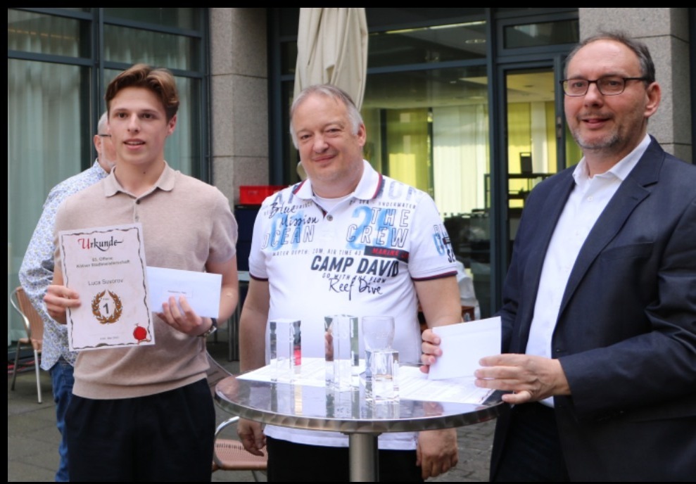 Von der SG Porz nahmen neben Luca noch Dmitrii Marcziter, Alex Marcziter, Sam Mohebbi und Maria Burlutskaia teil, die fast alle ein mehr oder weniger deutliches DWZ-Plus erzielen konnten und das Turnier damit vermutlich ebenfalls in guter Erinnerung behalten werden.