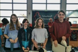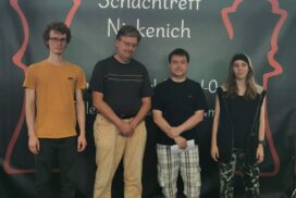 Unsere 1. Mannschaft durfte sich nach zwei ungefährdeten Siegen gegen DJK Oberwesel und Schachfreunde Hillscheid I zum Auftakt direkt mit dem Titelfavoriten SC Heimbach-Weis/Neuwied I messen. Ramil konnte hier einen beachtlichen Sieg gegen den an Nr. 1 gesetzten Tim Ronge (DWZ: 2306) erzielen, dennoch ging der Mannschaftskampf leider mit 1:3 verloren, was angesichts der Spielstärke des Gegners aber in Ordnung ging. Wir ließen uns durch diesen kleinen Rückschlag jedoch nicht aus dem Konzept bringen, ganz im Gegenteil. In den Runden 4 und 5 folgten wieder zwei ungefährdete Siege gegen SV 03/25 Koblenz II und SC Remagen-Sinzig I. Mit 8 Punkten aus 5 Runden standen wir also ganz gut da, so dass wir es in der vorletzten Runde wieder mit einem stärkeren Gegner, der SG Kaiserslautern 1905, zu tun hatten. Ramil und Michelle hatten beide einen richtig guten Tag erwischt und bezwangen ihre nominell stärkeren Gegner. Auch Norbert spielte heute ein richtig starkes Turnier und steuerte gegen seinen ebenfalls nominell stärkeren Gegner das entscheidende Remis zum 2.5:1.5-Sieg bei. Das Erreichen von Platz 2 oder 3 schien zu diesem Zeitpunkt tatsächlich im Bereich des Möglichen zu liegen, auch wenn in der Schlussrunde mit SV 03/25 Koblenz I erneut eine starke Mannschaft mit durch die Bank nominell stärkeren Gegnern auf uns wartete. Nach 5.5 Punkten aus 6 Spielen verlor Ramil leider seine erste Partie. Norbert und Uli behielten die Nerven und sorgten mit zwei überzeugenden Siegen für die 2:1-Führung! Alles hing nun an Michelle, die noch einen halben Punkt beisteuern musste. Nach einem winzigen Fauxpas war bereits ein kompletter Turm weg und die Partie schien bereits hoffnungslos verloren zu sein. Doch Michelle zeigte ihren starken Kampfgeist und tatsächlich gelang es ihr – vor einem inzwischen versammelten Publikum – irgendwie noch das Remis einzutüten! 6 Siege und nur 1 Niederlage – fantastisch! Dieses tolle Ergebnis bedeutete am Ende tatsächlich den 2. Platz hinter dem verdienten Turniersieger SC Heimbach-Weis/Neuwied I. Glückwunsch an Ramil, Norbert, Michelle und Uli zu dieser hervorragenden Mannschaftsleistung!