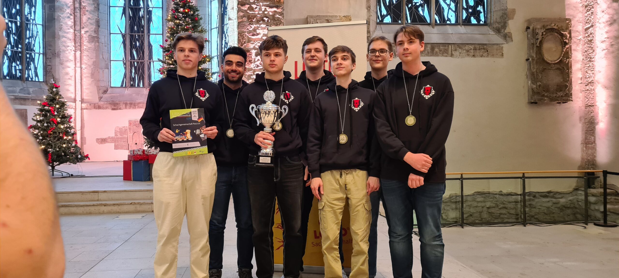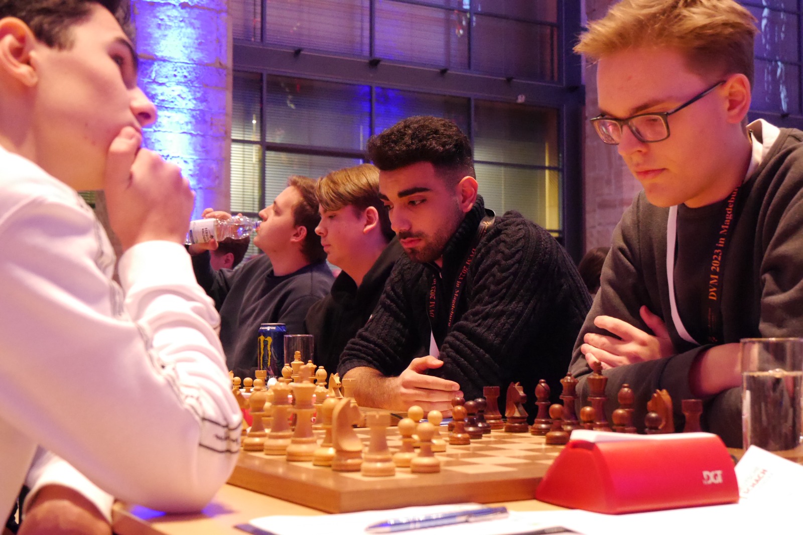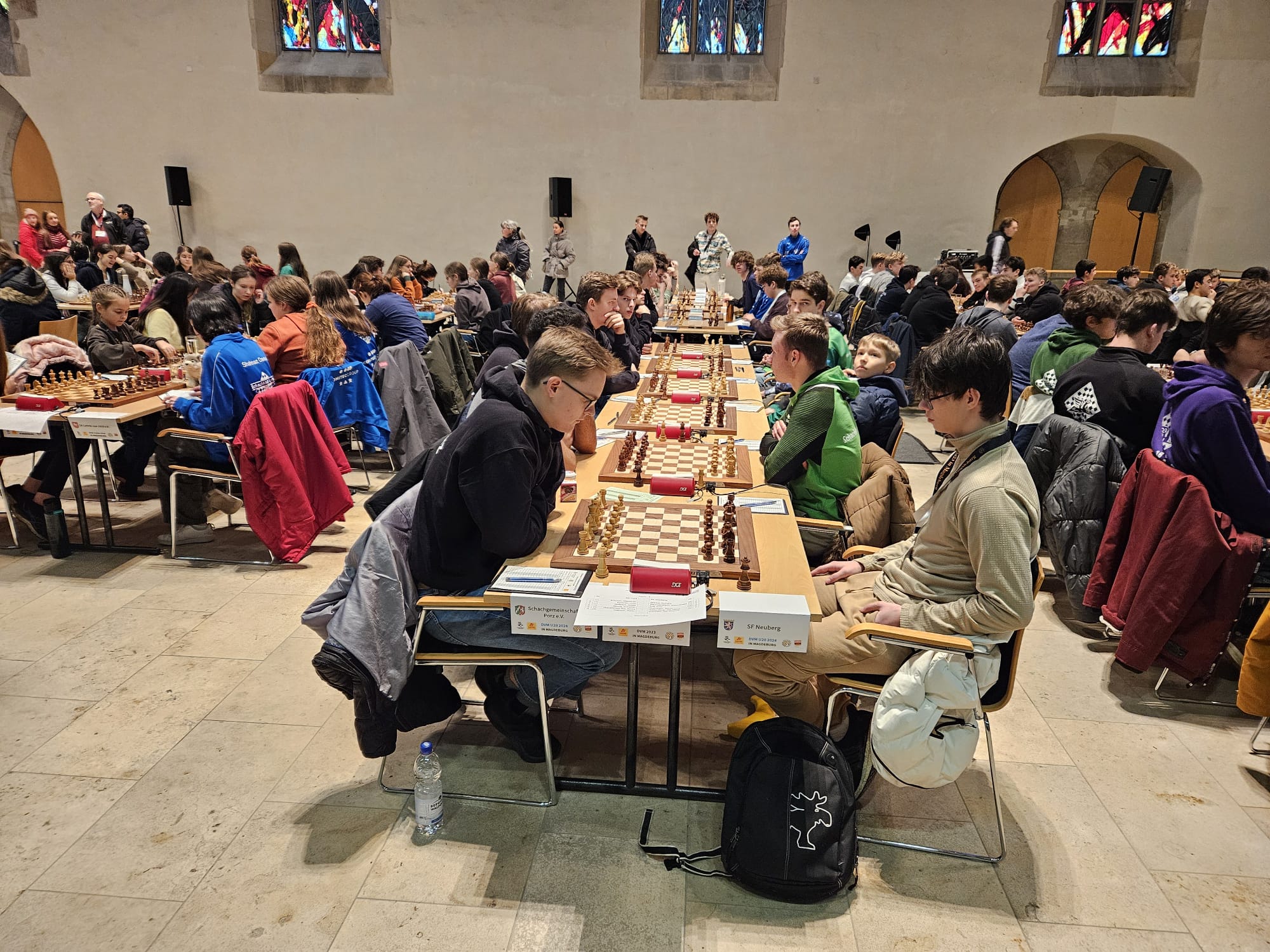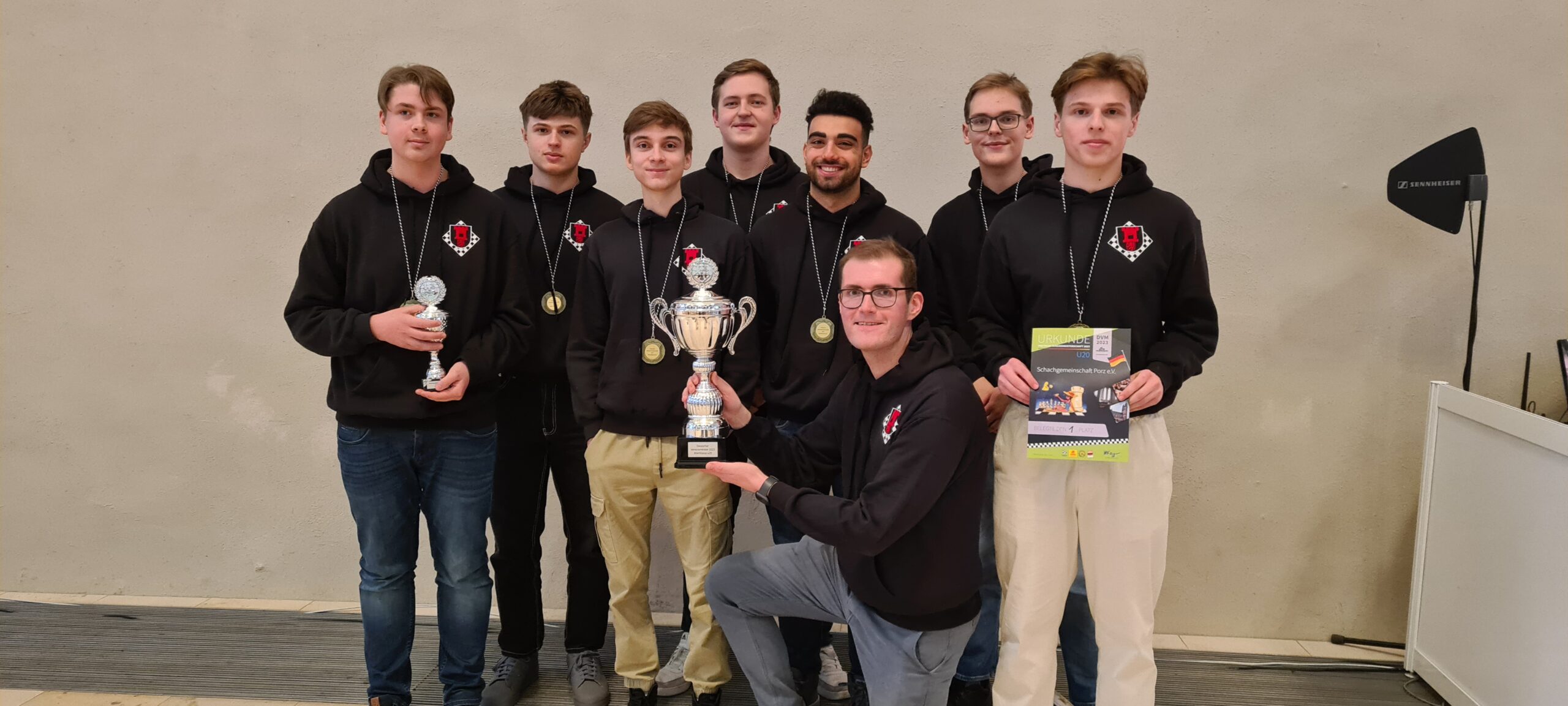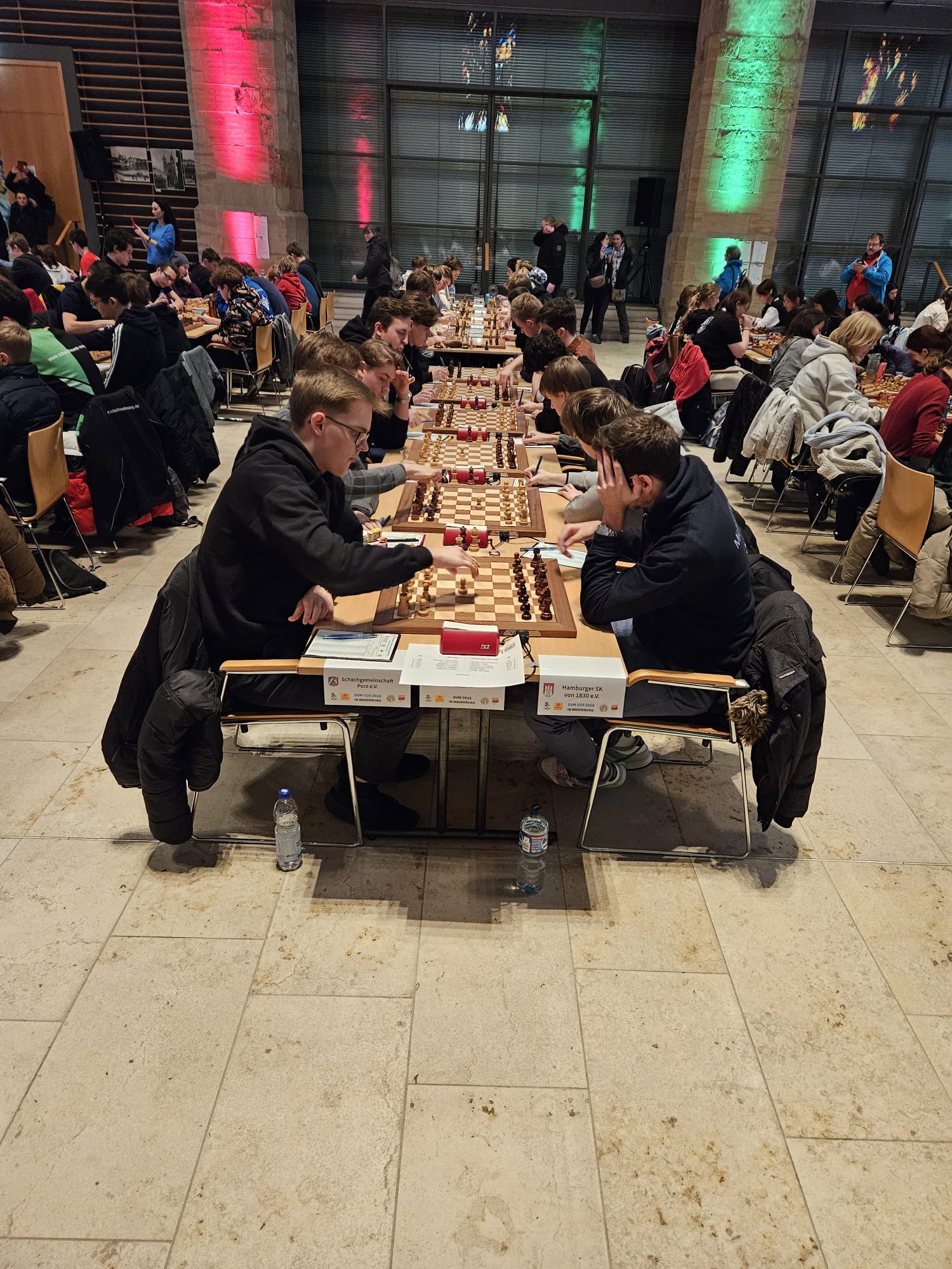 Als eines von acht Porzer Teams brach unsere U20 zur zentralen DVM in Magdeburg auf. Zum letzten Mal konnte der Kern unseres Teams aus dem „goldenen Jahrgang“ 2003 an der DVM teilnehmen und unser Team spielte bis auf wenige Veränderungen zum vierten Mal in derselben Besetzung. Alexander und Luca Suvorov besetzten die Spitzenbretter und Jonas Gallasch war erneut am 3. Brett. An den hinteren drei Brettern der Setzliste saßen erneut Borna Mohammadi Nia, Rafael Sabirov und Robin Gallasch. Die einzige Veränderung zu den letzten zwei Jahren gab es am vierten Brett – unser Neuzugang Christian Gluma (zuvor SG Bochum) nahm den Platz von Laurin Perkampus ein, der in den letzten drei Jahren dabei war, diesmal aber nicht bei der DVM dabei sein konnte und uns aus der Ferne die Daumen drückte.