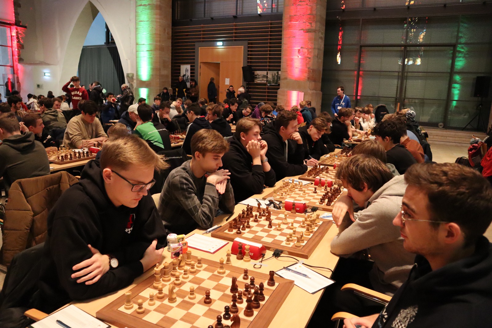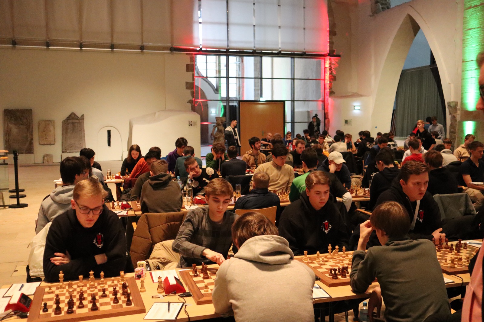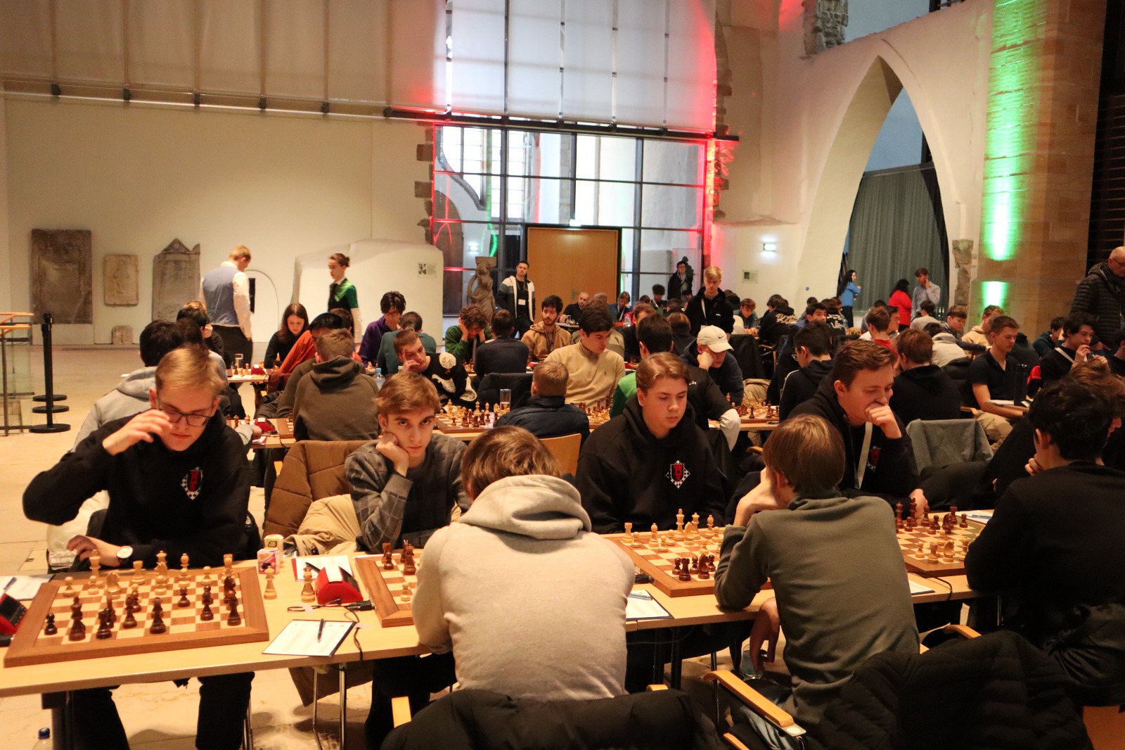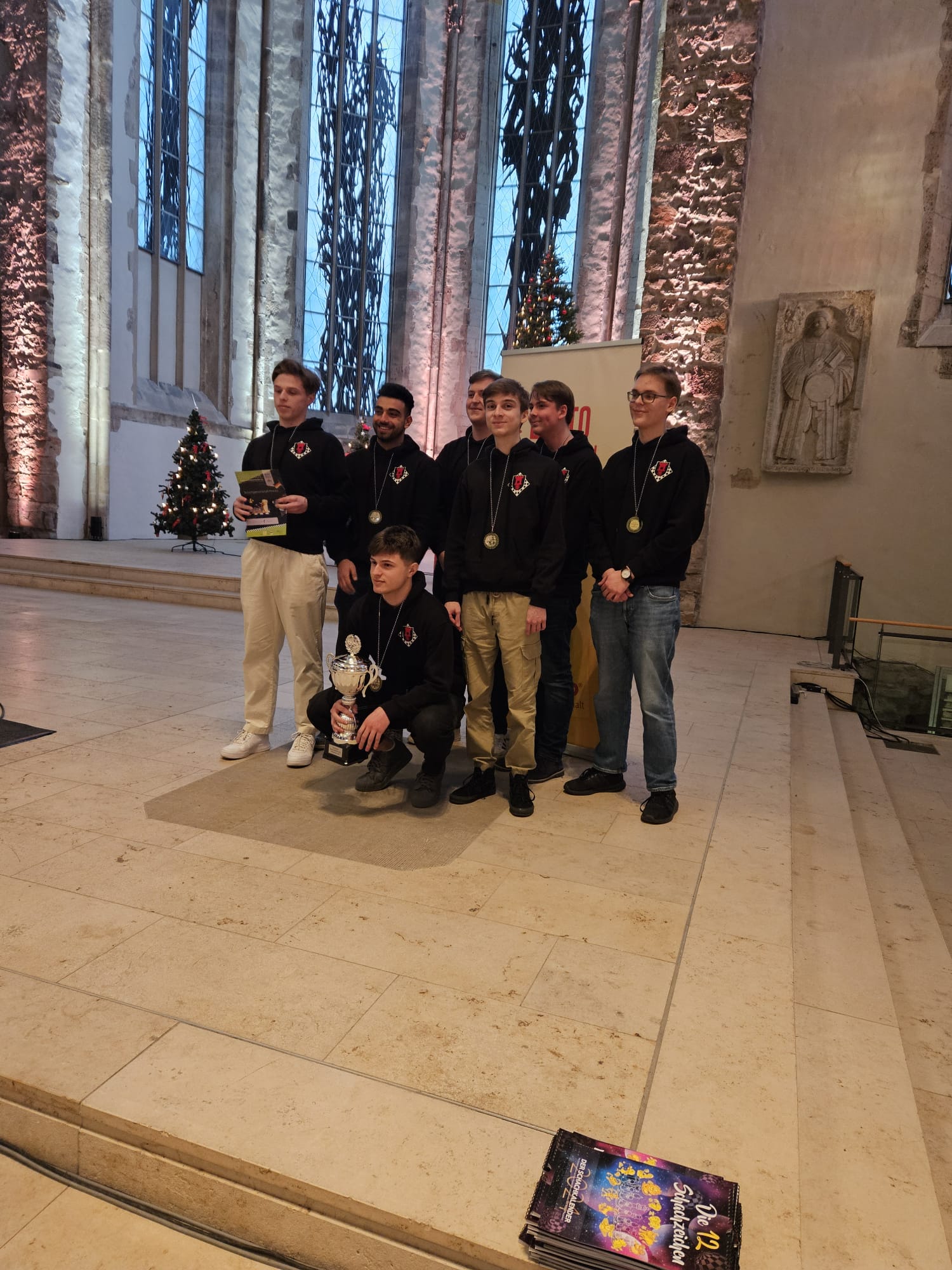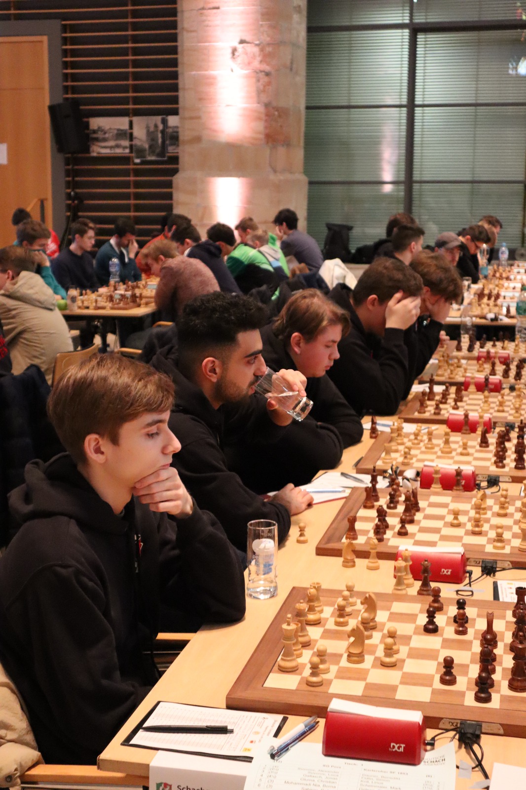 Als eines von acht Porzer Teams brach unsere U20 zur zentralen DVM in Magdeburg auf. Zum letzten Mal konnte der Kern unseres Teams aus dem „goldenen Jahrgang“ 2003 an der DVM teilnehmen und unser Team spielte bis auf wenige Veränderungen zum vierten Mal in derselben Besetzung. Alexander und Luca Suvorov besetzten die Spitzenbretter und Jonas Gallasch war erneut am 3. Brett. An den hinteren drei Brettern der Setzliste saßen erneut Borna Mohammadi Nia, Rafael Sabirov und Robin Gallasch. Die einzige Veränderung zu den letzten zwei Jahren gab es am vierten Brett – unser Neuzugang Christian Gluma (zuvor SG Bochum) nahm den Platz von Laurin Perkampus ein, der in den letzten drei Jahren dabei war, diesmal aber nicht bei der DVM dabei sein konnte und uns aus der Ferne die Daumen drückte.