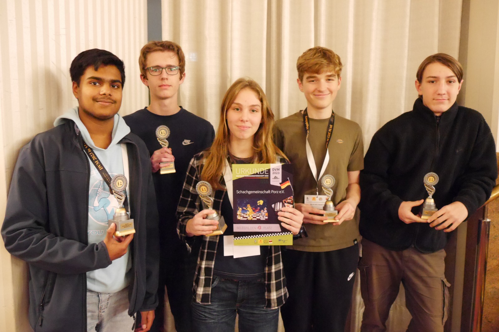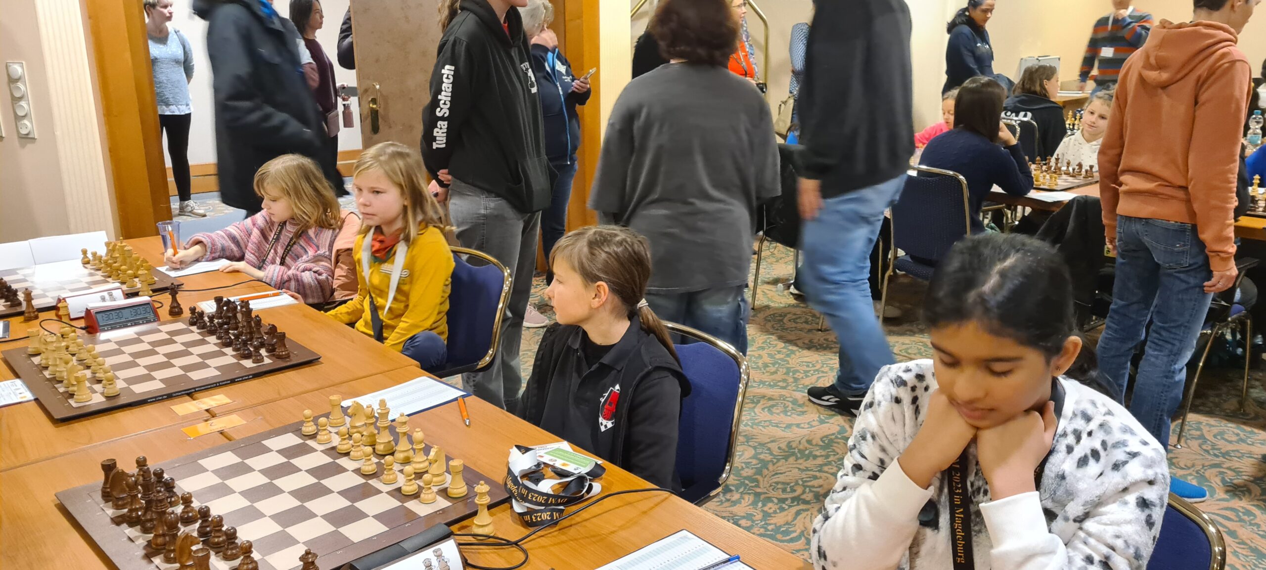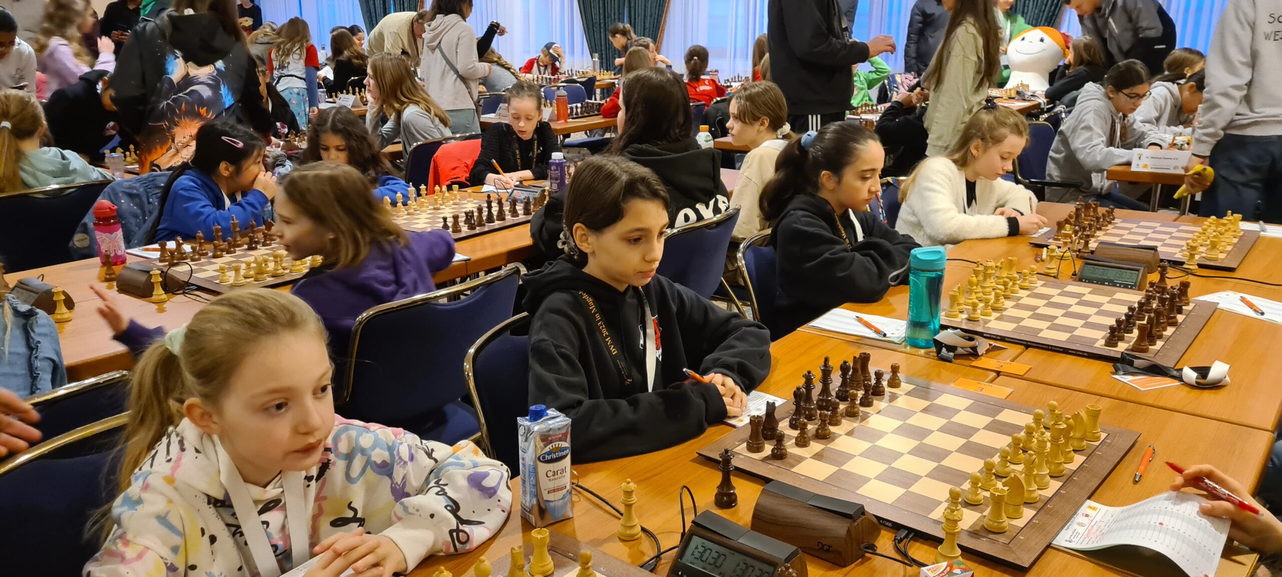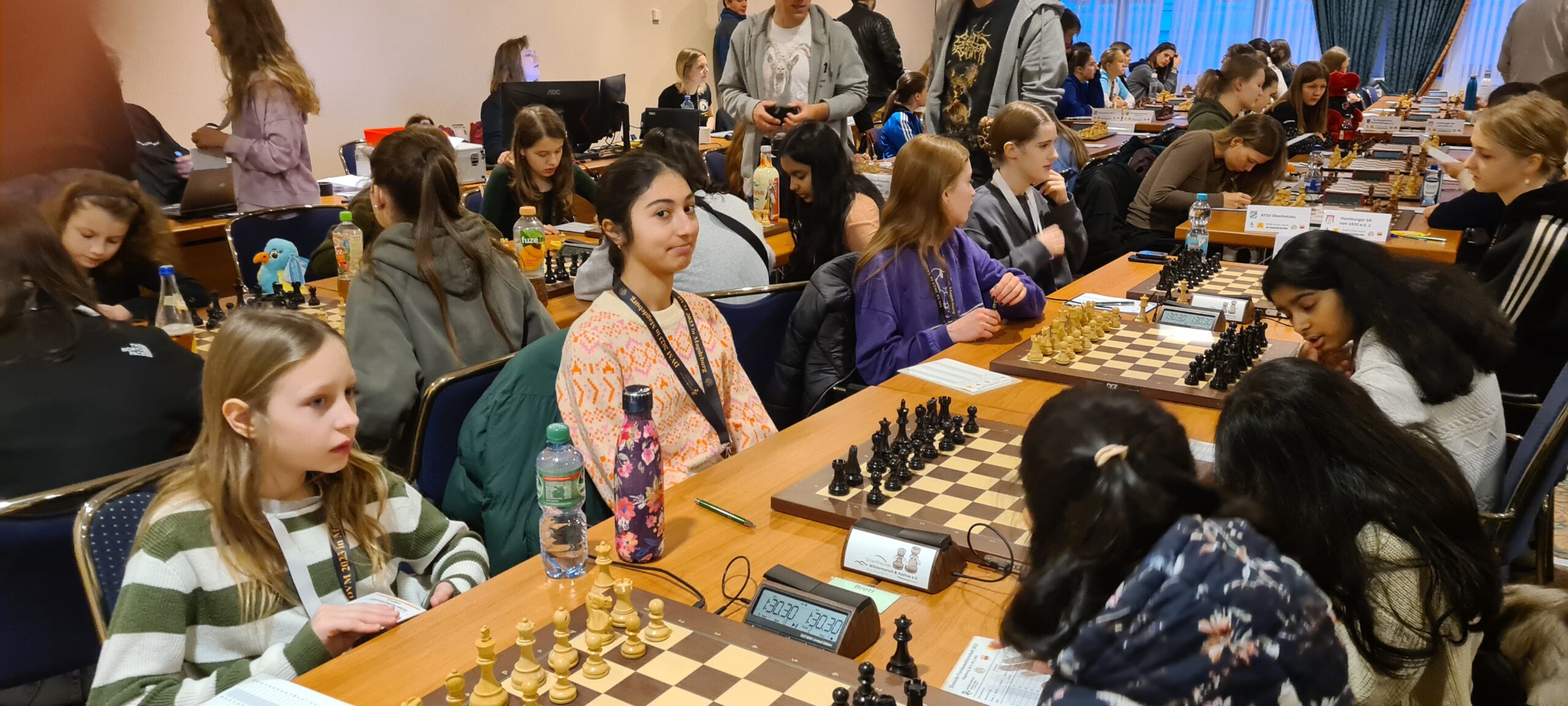 Und ein abschließender Dank geht noch an die Vereine, die durch die Abstellung von Gastspielerinnen dabei geholfen haben, dass wir am Ende trotz der Ausfälle noch alle Bretter der vier Mädchen-Mannschaften passend besetzen konnten: Bielefelder SK (Luna Vogt/U16w), Gütersloher SV (Helena Neumann/U16w), SK Halle (Lilian Schirmbeck/U12w) und Klub Kölner SF (Ananya Prasannavenkatesan/U12w).