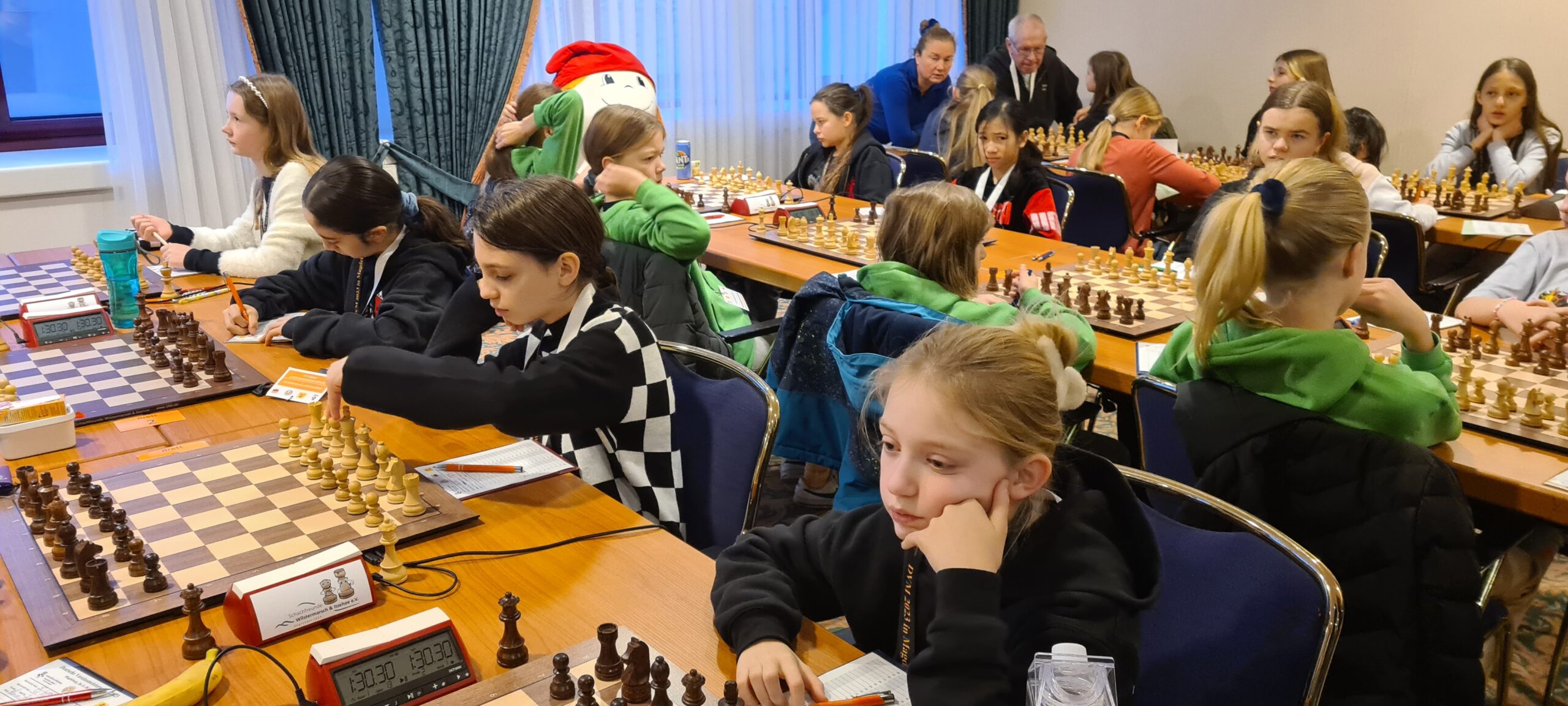 Seit drei Jahren erlaubt es die Turnierordnung der Deutschen Schachjugend, dass sich in den Mädchen-Klassen auch zweite Mannschaften eines Vereins für die jeweilige DVM qualifizieren können. Nachdem wir das in den vergangenen Jahren mit schöner Regelmäßigkeit bereits in der U16w schaffen konnten, war dies in diesem Jahr zum ersten Mal bei den Jüngeren der Fall.