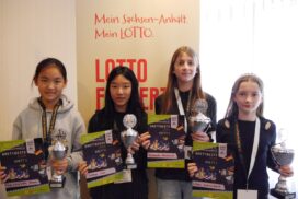 Herausragend dabei das Ergebnis unserer Gastspielerin Lilian Schirmbeck (SK Halle 1946), die an Brett 1 mit ihren 7 Punkten aus 7 Partien ein absolut überragendes Turnier spielte. Und das, obwohl sie eigentlich sogar noch in der Altersklasse U10 antreten dürfte.