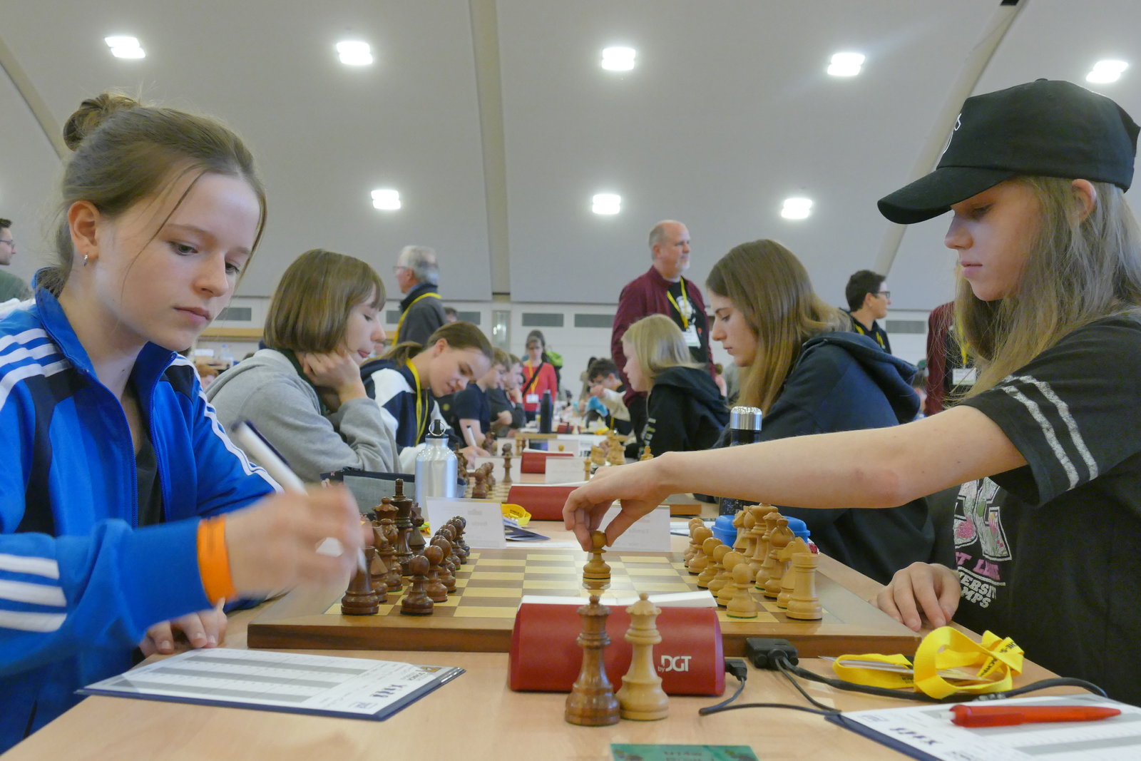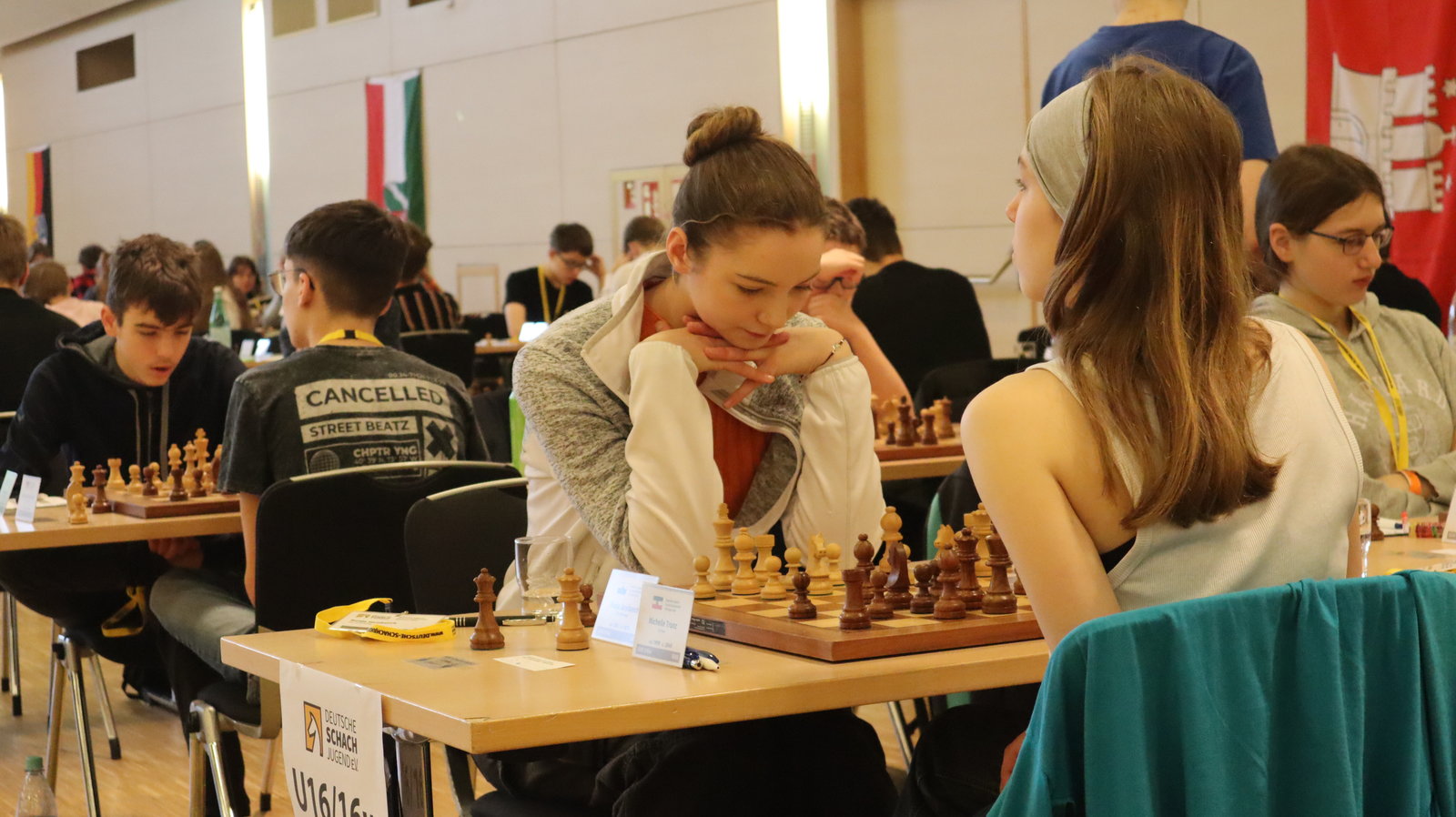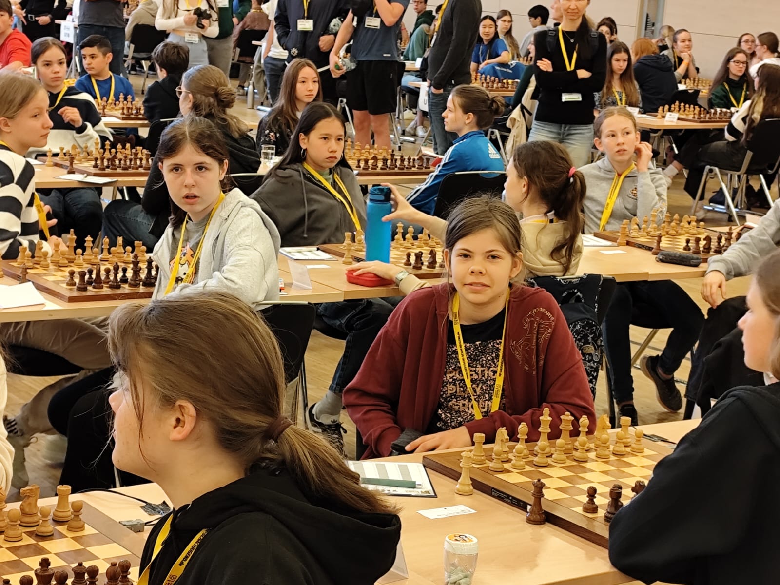 Am vorgestrigen Samstag endeten die Einzelmeisterschaften 2024 der Deutschen Schachjugend mit einem nie dagewesenen Erfolg für die SG Porz. Gleich in zwei Altersklassen kommen die amtierenden Deutschen Meister jetzt aus unserem Verein: Michelle Trunz (auf dem Bild links) gewann die U16w und ihre zwei Jahre jüngere Schwester Tamila die U14w.