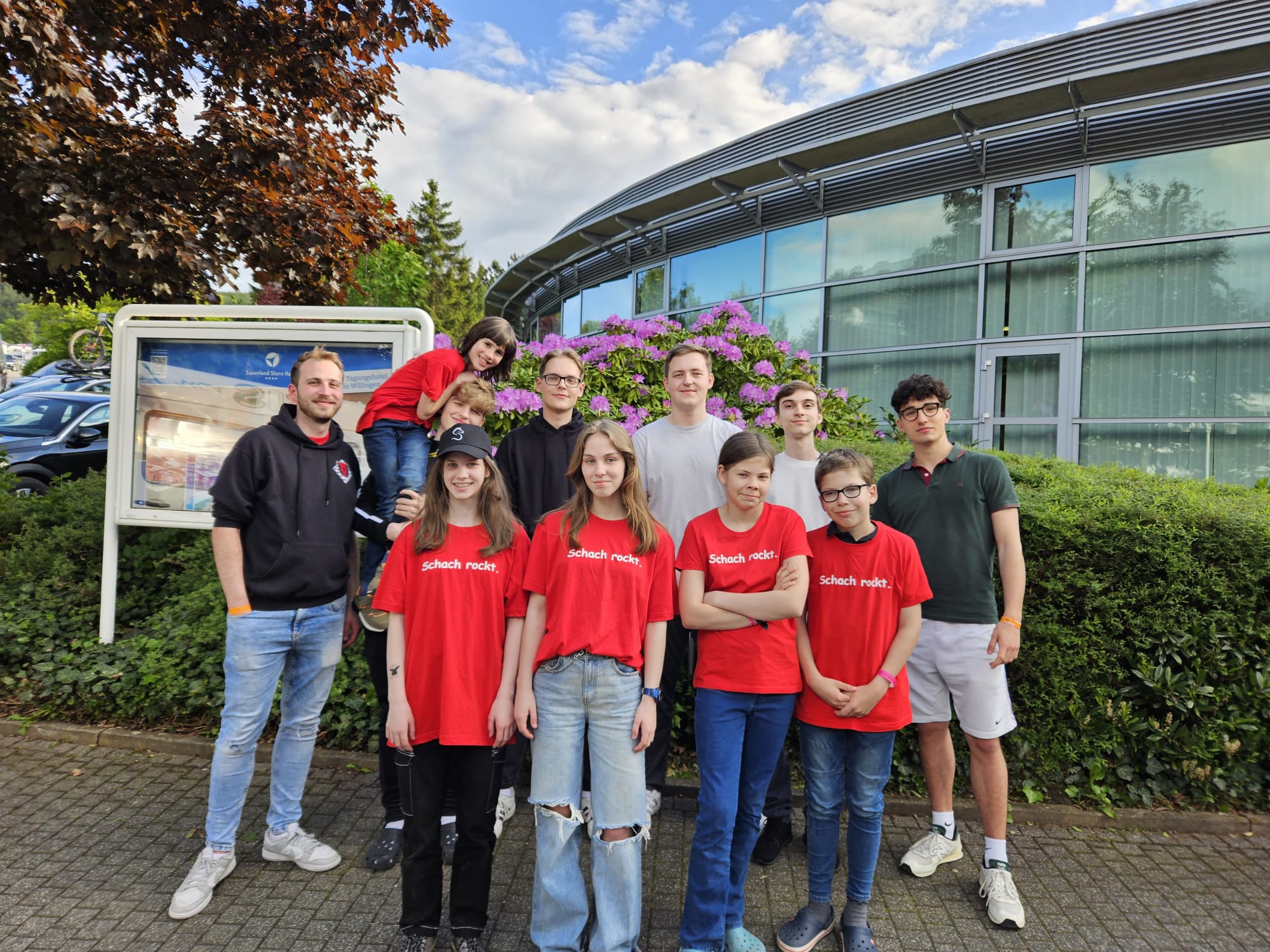 Das obige Bild zeigt die (fast vollständige) Porzer Spieler-Delegation bei den diesjährigen Deutschen Einzelmeisterschaften ergänzt um den ‚Dauer-Kommentator‘ der DSJ Jonas Gallasch, der die Internet-Gemeinde durchgängig mit fachmännischen Einschätzungen der Partien versorgte.