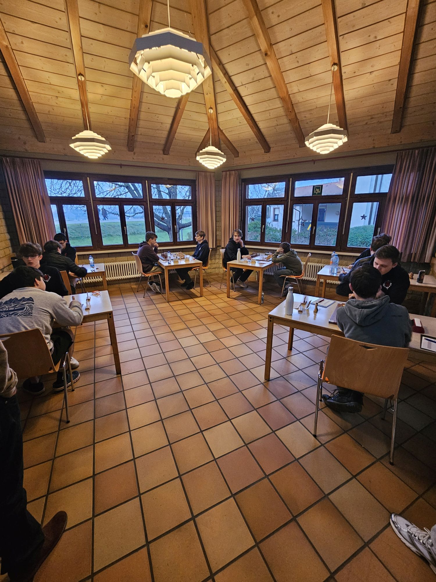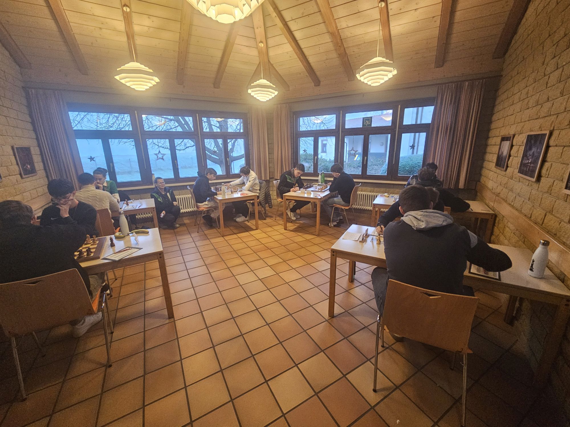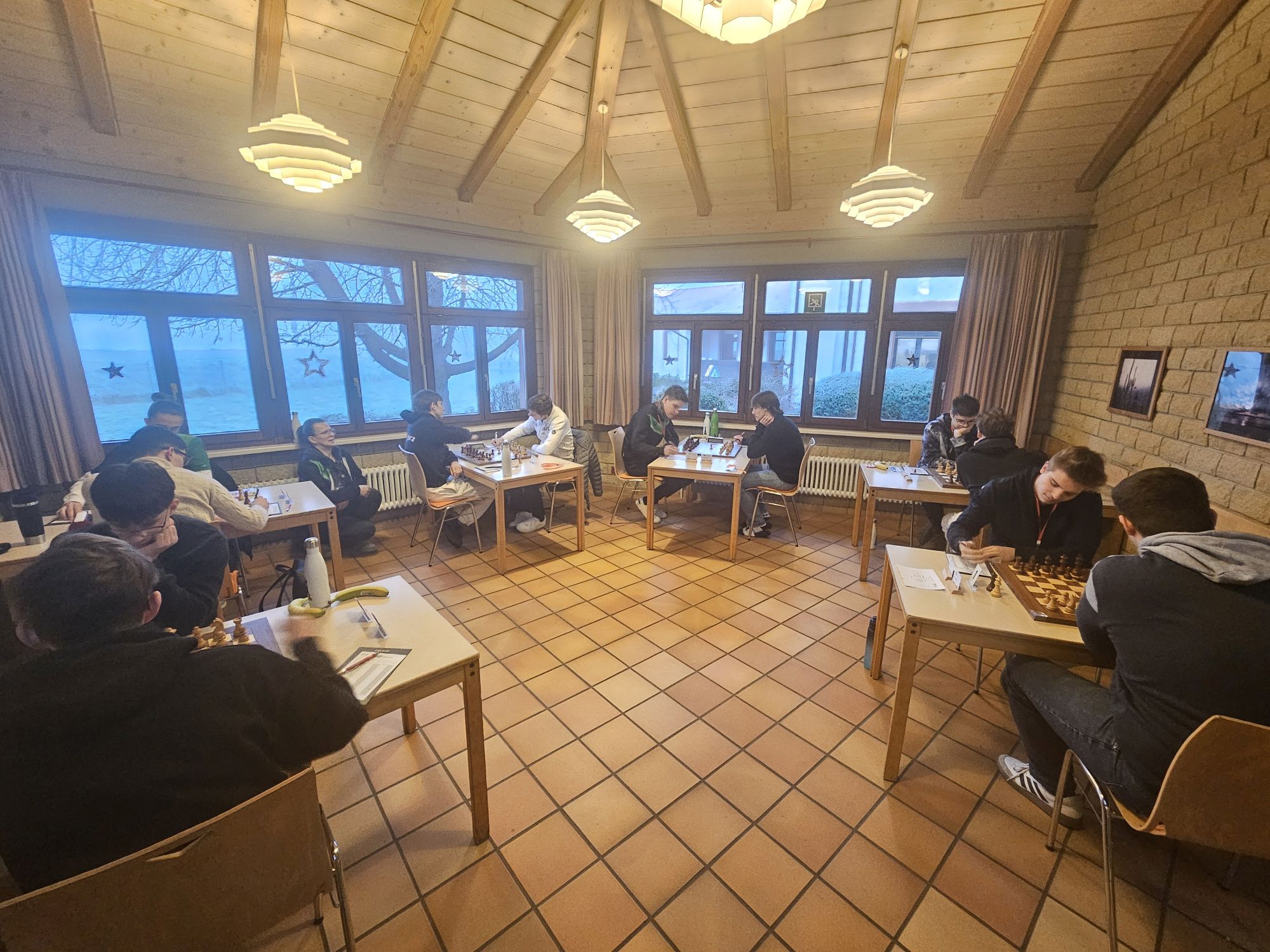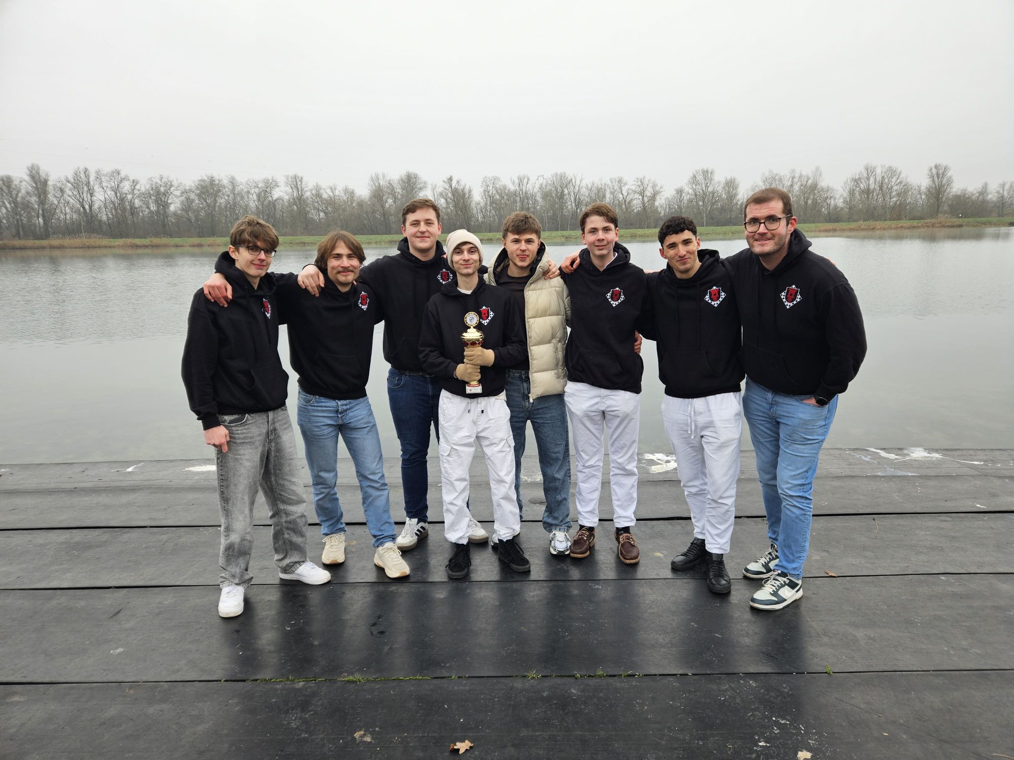 Die Anreise unserer neunköpfigen Delegation am zweiten Weihnachtstag gestaltete sich holprig, da wir aufgrund eines Personenschadens einen unfreiwilligen zweistündigen Zwischenstopp in Offenburg einlegen mussten. Dadurch verpassten wir das Abendessen in der Jugendherberge und erreichten nach einem Zwischenstopp beim Restaurant mit dem großen goldenen M erst gegen 21:45 Uhr unser Ziel in Breisach. Die idyllisch direkt am Rhein und der Grenze zu Frankreich gelegene Jugendherberge begrüßte uns mit dichtem Nebel und Temperaturen unter dem Gefrierpunkt, was sich leider über den gesamten Turnierverlauf weitgehend durchzog – es war eisig kalt und die Sonne kam nur selten durch die trübe Nebelsuppe durch.