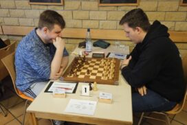 In der zweiten Runde kreuzten wir die Klingen mit der SG Leipzig, an deren Spitze mit IM Nguyen der nominell stärkste Spieler des Turniers spielte. Wir besiegten den sächsischen Vertreter knapp mit 3,5:2,5, allerdings wirkte der Mannschaftssieg von außen nie wirklich gefährdet. Julian gewann schnell, Rafael und Victor vergrößerten ihre Vorteile stetig und verdichteten diese zum Sieg und auch Jonas war gegen IM Nguyen am Drücker und remisierte aus der Position der Stärke. Max‘ Niederlage war sicherlich auch einer erneut verbesserungsfähigen Bedenkzeiteinteilung anzulasten und ähnliches traf auch auf Christian zu, der in den kritischen Momenten seiner Partie ebenfalls zu starke Zeitprobleme hatte. Insgesamt verliefen die ersten beiden Runden jedoch weitgehend erwartungsgemäß, wobei die TSG Oberschöneweide ein erstes Ausrufezeichen setzte und dem HSK ein 3-3 abringen konnte.