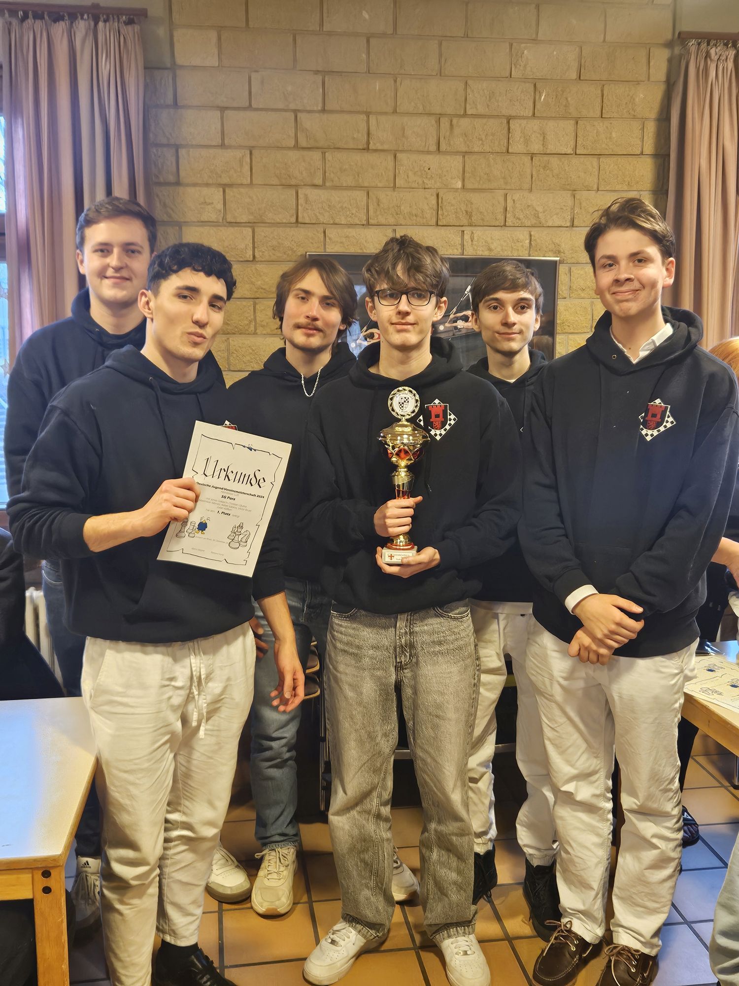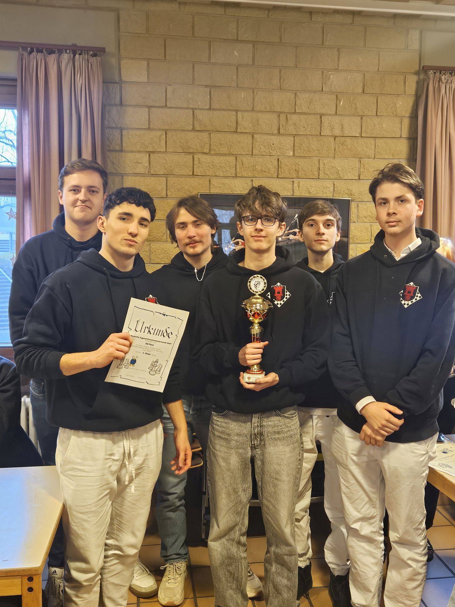 Teamcaptain Jeffrey Paulus berichtet – Auch in diesem Jahr war die SG Porz wieder mit sieben Teams in sechs verschiedenen Altersklassen bei den Deutschen Vereinsmeisterschaften (DVM) der Deutschen Schachjugend vertreten. Als amtierender Deutscher Meister des Vorjahres, bei dem wir mit einer makellosen Bilanz den Titel geholt haben (siehe hier: https://sg-porz.netschmiede24.de/2024/01/02/mission-accomplished-wir-sind-deutscher-meister-u20-2023/), hat sich unser U20-Team über den 3. Platz in der Jugendbundesliga West erneut für die DVM qualifiziert, die in diesem Jahr im äußersten Südwesten Deutschlands, in der Jugendherberge Breisach am Rhein vom Schachklub Freiburg-Zähringen ausgerichtet wurde.
