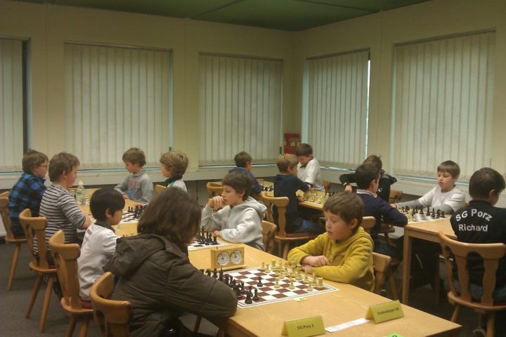 Nur einen Tag nach der letzten Runde der Kölner Jugend-Einzelmeisterschaft (also am 16.02.) war unser Spiellokal erneut fast bis auf den letzten Sitzplatz besetzt. Insgesamt nicht weniger als zehn(!) Mannschaften kämpften um Brett- und Mannschaftspunkte. Zum Glück waren nur zwei davon 8er-Mannschaften. Der Rest waren unsere vier U12-Mannschaften und ihre jeweiligen Gegner. Da diese sich ja an...Weiter lesen
