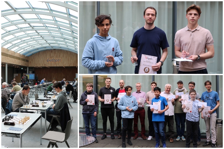 Jonas Gallasch und Maximilian Menzel siegen in der A- und B-Gruppe. Alex Marcziter wird zweiter der B-Gruppe. SG Porz gewinnt die Vereinswertung. Jonas Gallasch gewinnt das A-Turnier (2100-2300 DWZ) mit vier aus fünf Punkten vor Maurin Möller und Thomas Michalczak. Die B-Gruppe (1900-2100 DWZ) wurde von Maximilian Menzel dominiert, der mit fünf Siegen aus fünf Partien einen ganzen Punkt vor der Konkurrenz landete.Weiter lesen